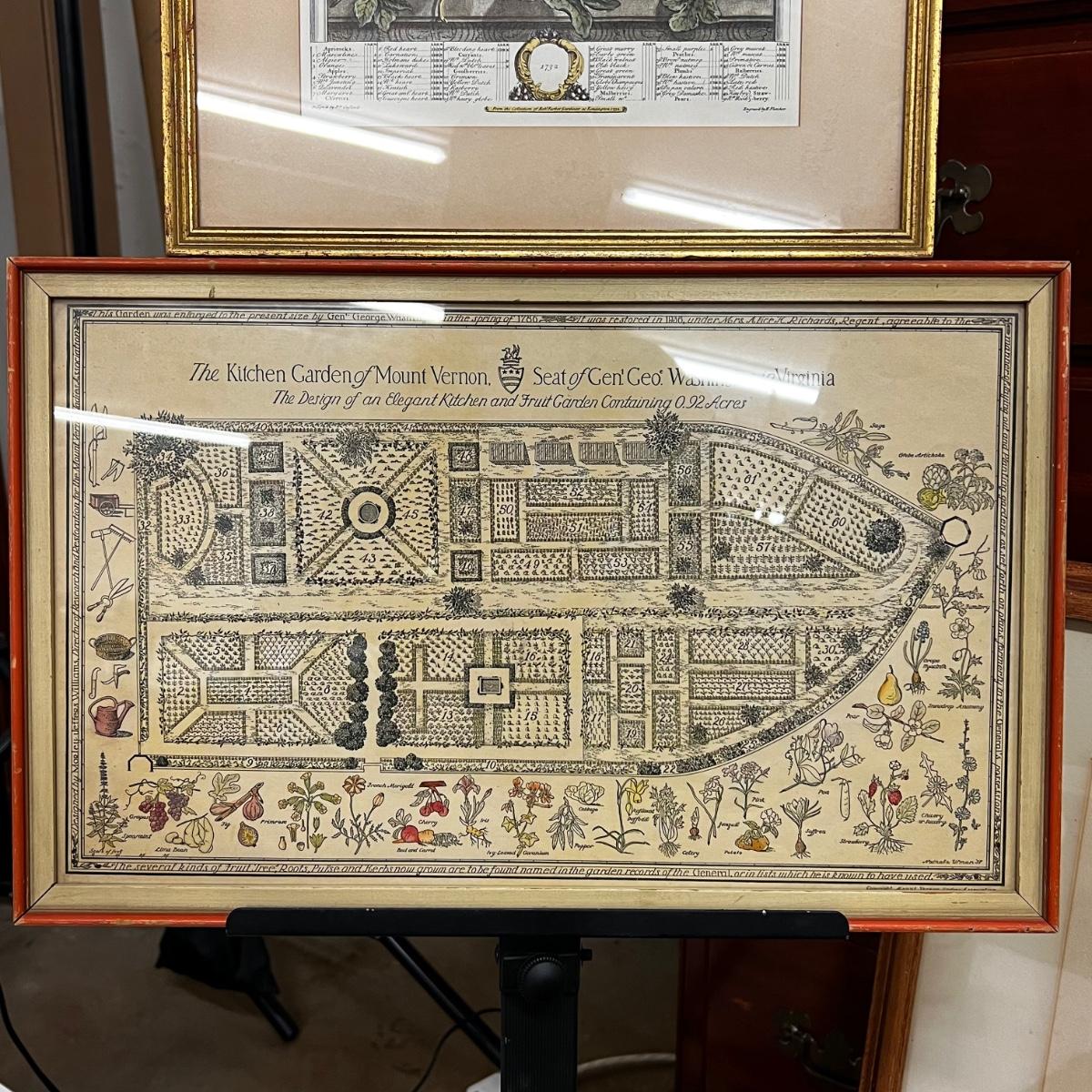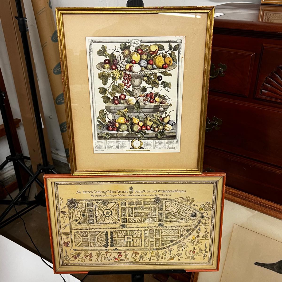 Framed Prints - Fruits June Fine Art Print by Robert Furber & Vintage 1937 Pictorial Map Print Kitchen Garden of Historic Mount Vernon VA.
