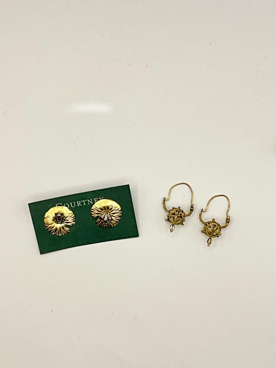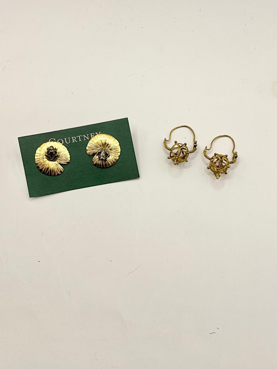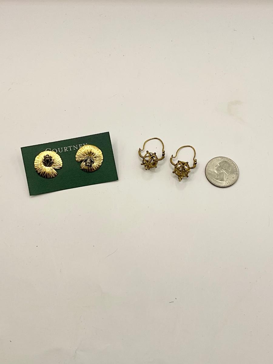 Lily pad sterling frogs gold plated pierced earrings with hexagonal gold plated over silver earrings with 14k gold wires
