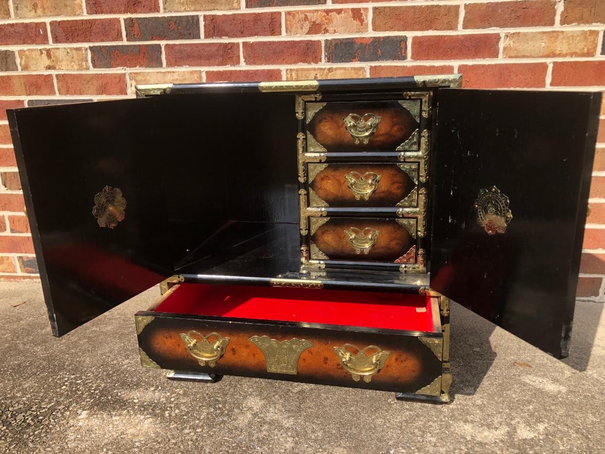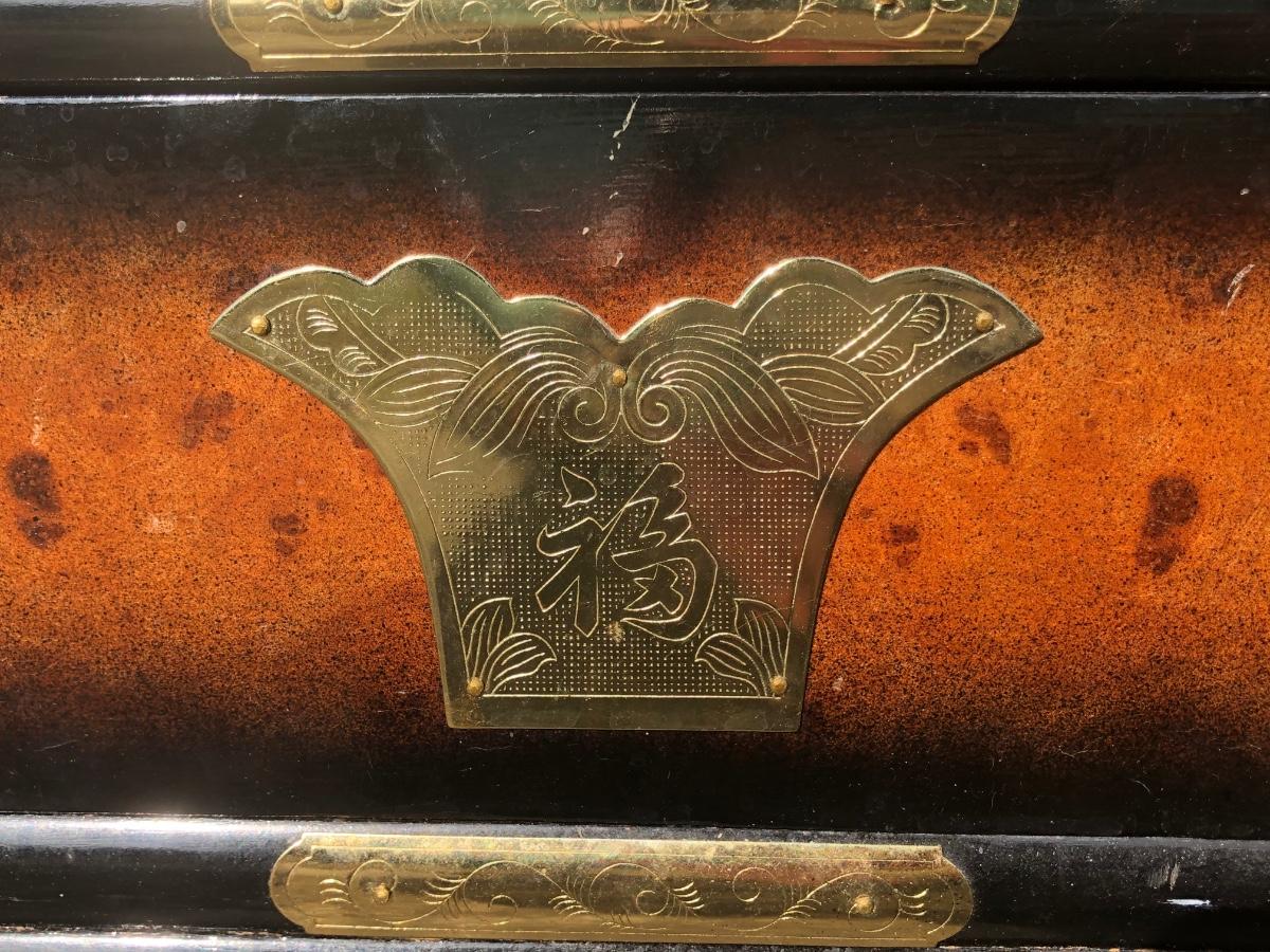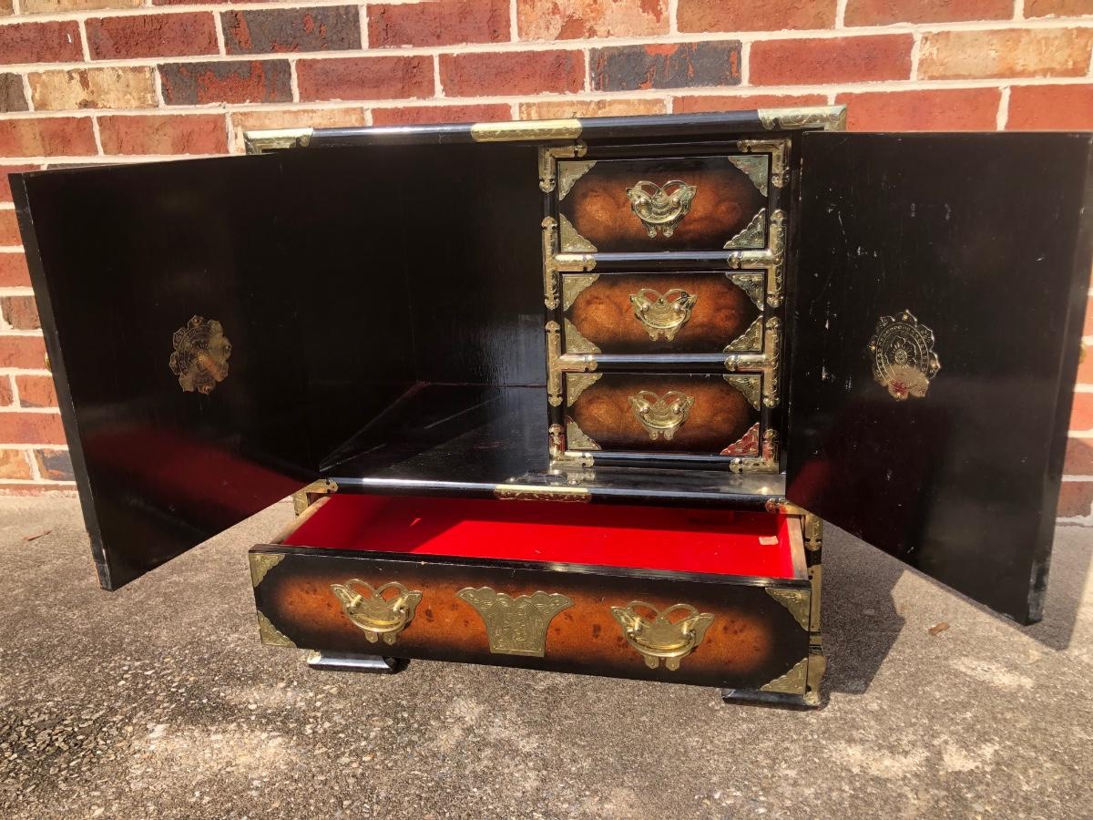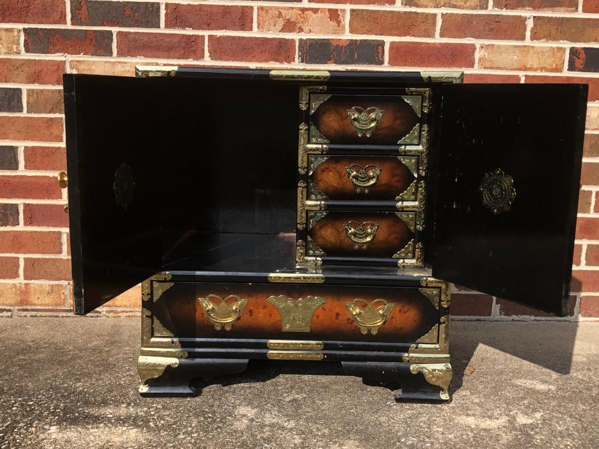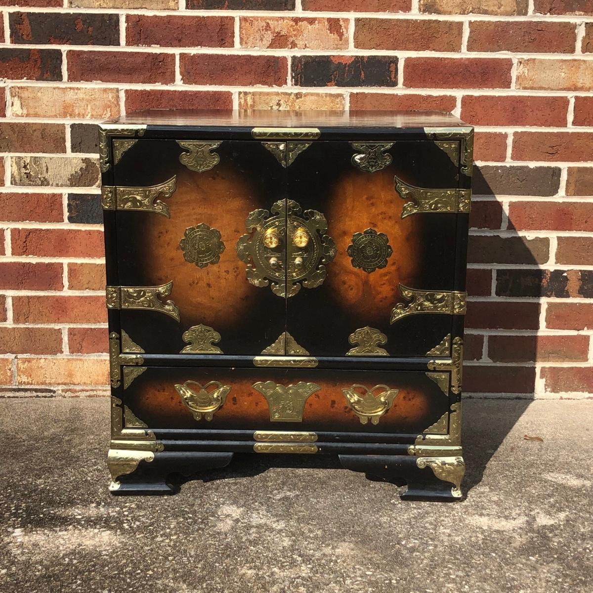 One beautiful chest with drawers and gold colored accents. Please see all pictures as they are the best representation of the items. The pictures show condition, measurements if taken, and what is included in the lot. Due to the large amount that we photograph and the time frame, we are not always able to take measurements. All items unless noted, are pre-owned and have been used. If you purchased furniture, you must bring help. We do not allow one person to carry large furniture out on their own. Bring help, tools and a truck for the safety of our client’s homes, and your personal safety. Any damages that result to the property including walls, and floors due to moving of the furniture will be charged to the buyer. Company policy. Thank you.