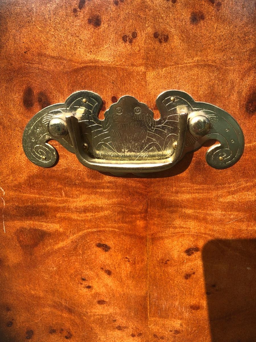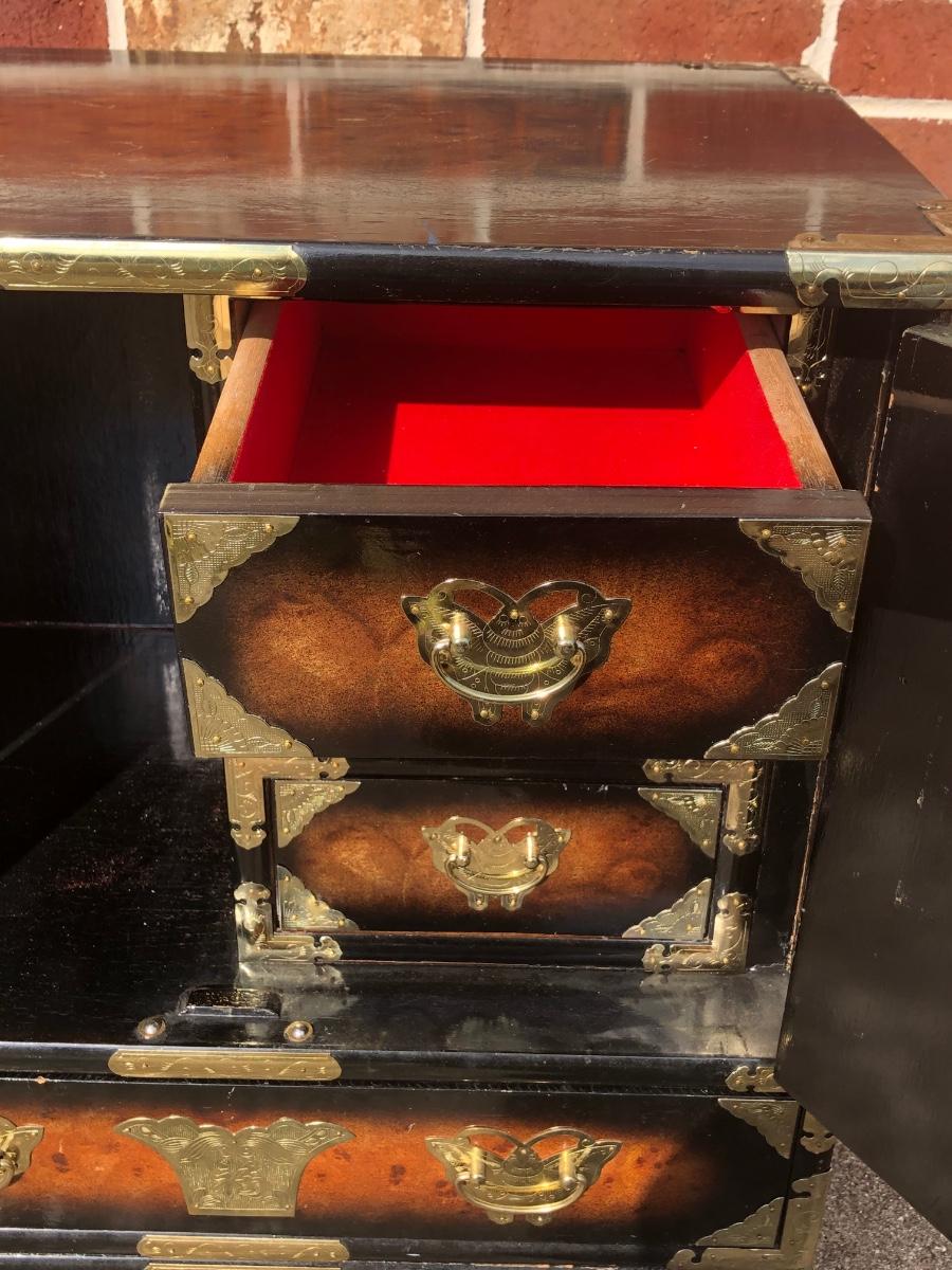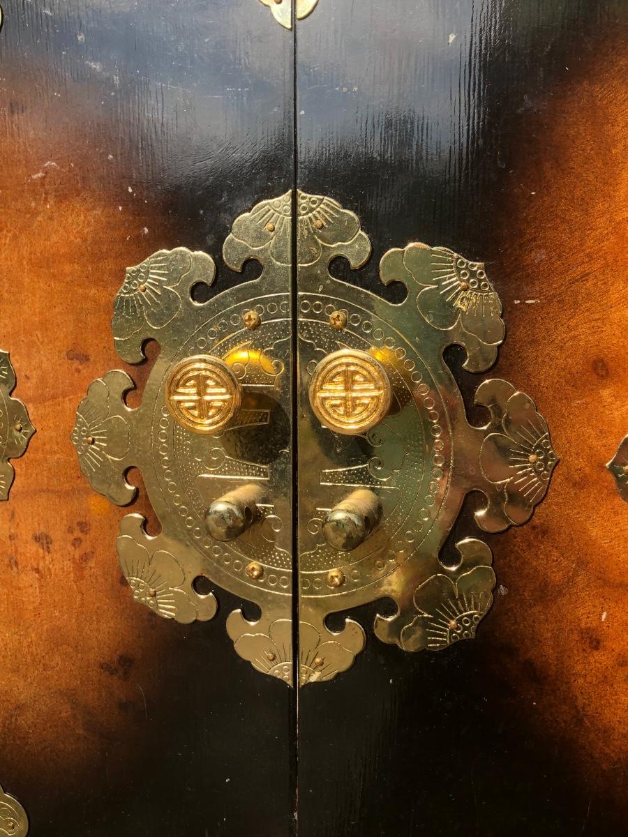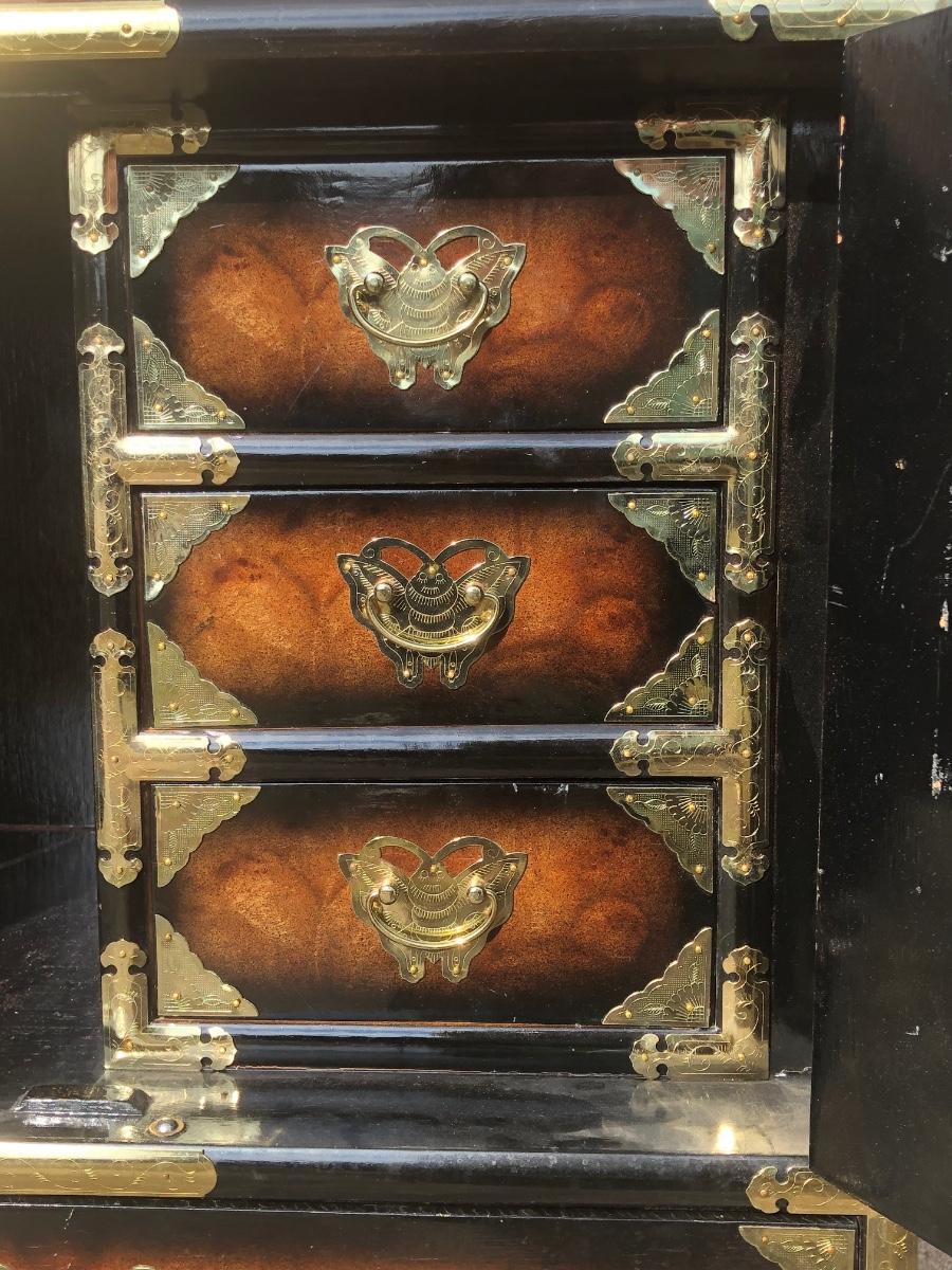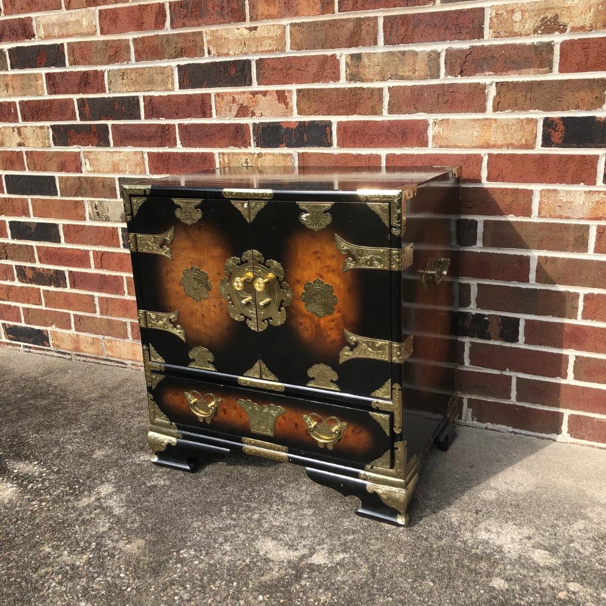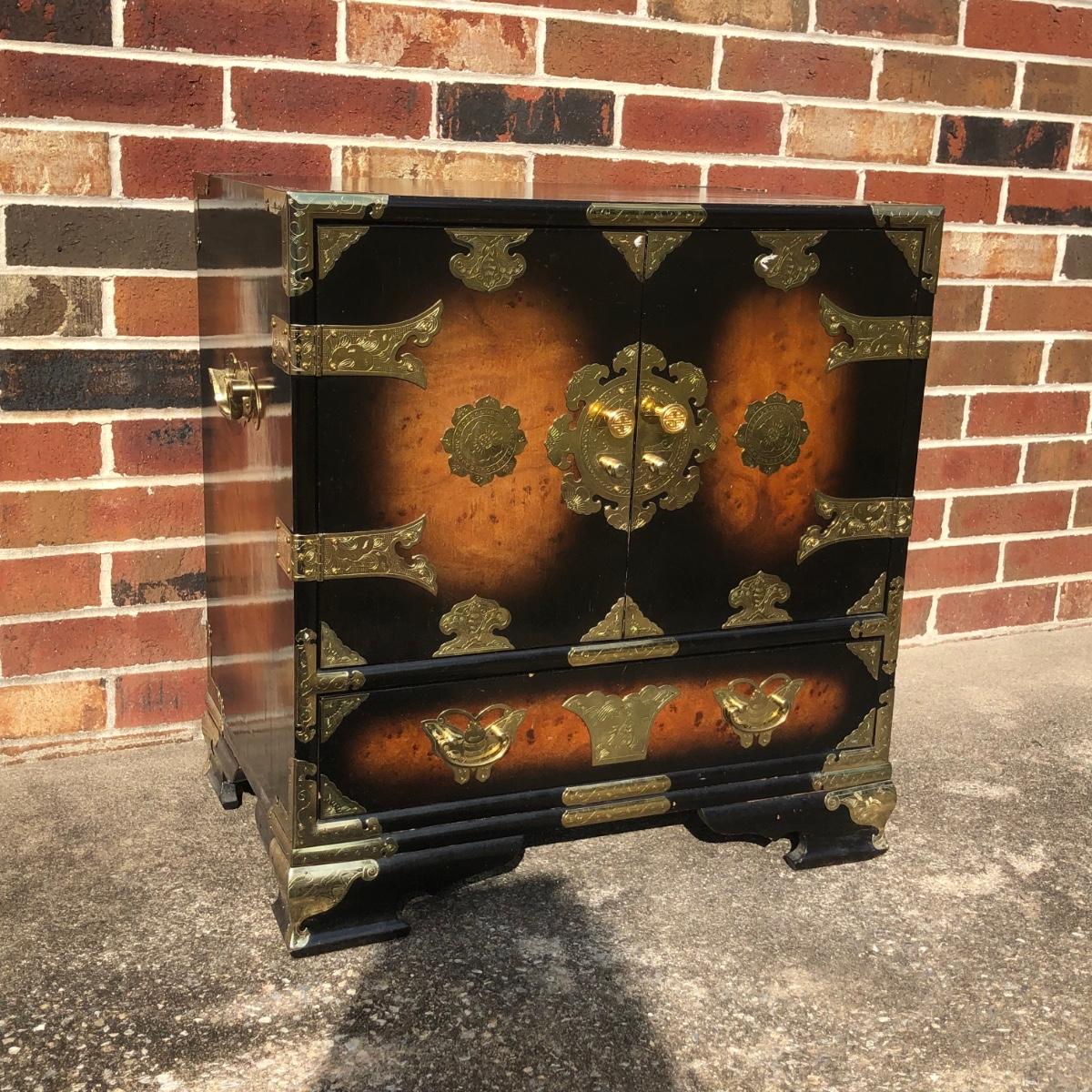 One beautiful chest with drawers and gold colored accents. Please see all pictures as they are the best representation of the items. The pictures show condition, measurements if taken, and what is included in the lot. Due to the large amount that we photograph and the time frame, we are not always able to take measurements. All items unless noted, are pre-owned and have been used. If you purchased furniture, you must bring help. We do not allow one person to carry large furniture out on their own. Bring help, tools and a truck for the safety of our client’s homes, and your personal safety. Any damages that result to the property including walls, and floors due to moving of the furniture will be charged to the buyer. Company policy. Thank you.