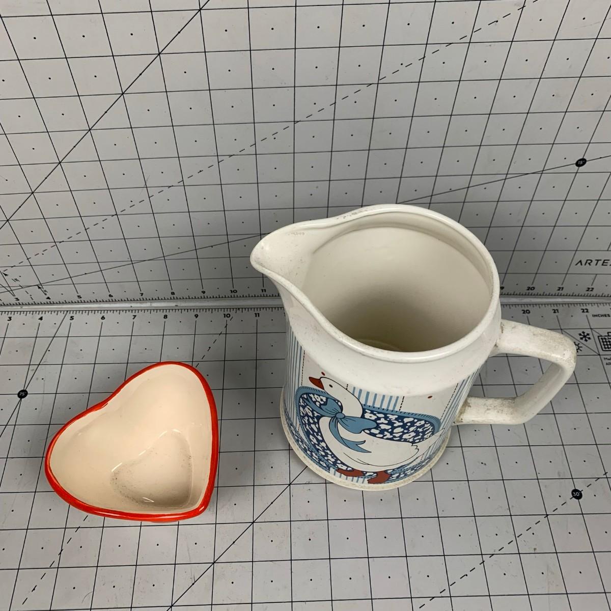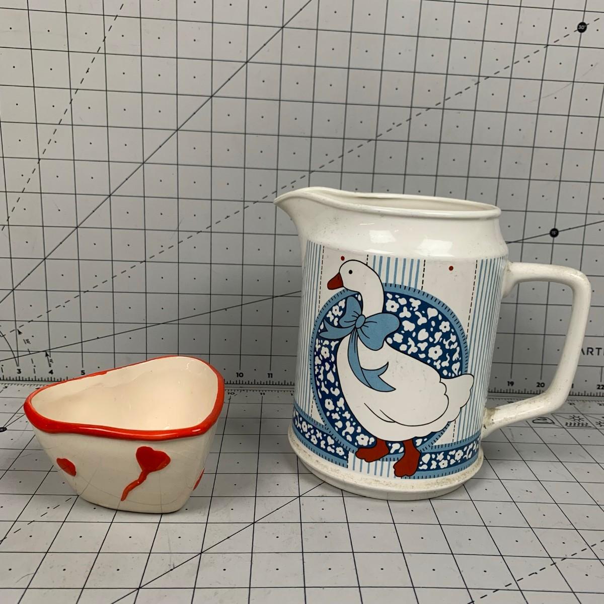 #159 Baker Hart & Stuart Blue Goose Pitcher and Heart Dish
