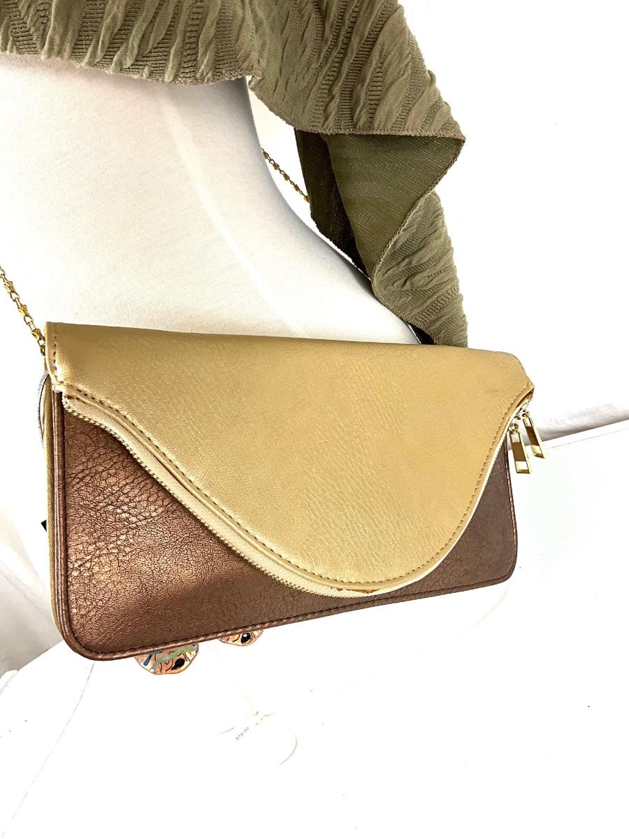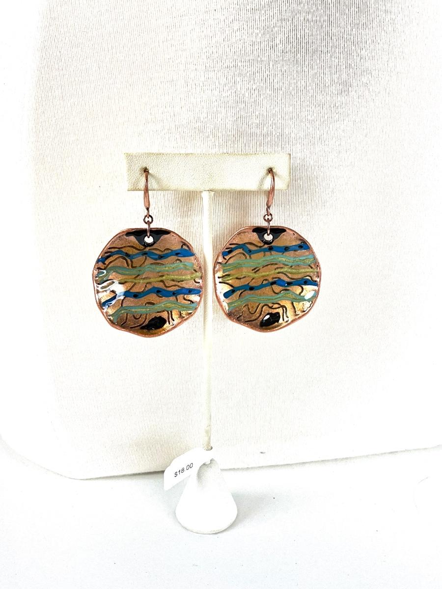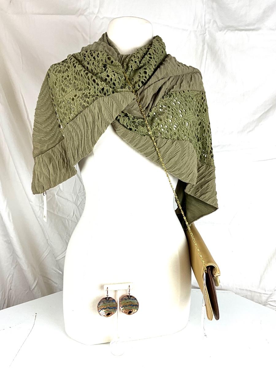 159 Copper Designed Earrings with Green Scarf and Gold Handbag