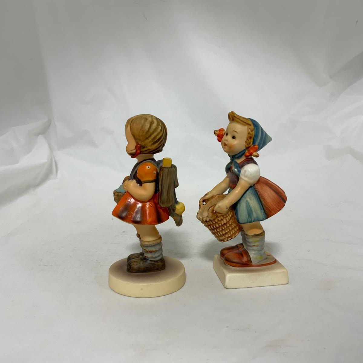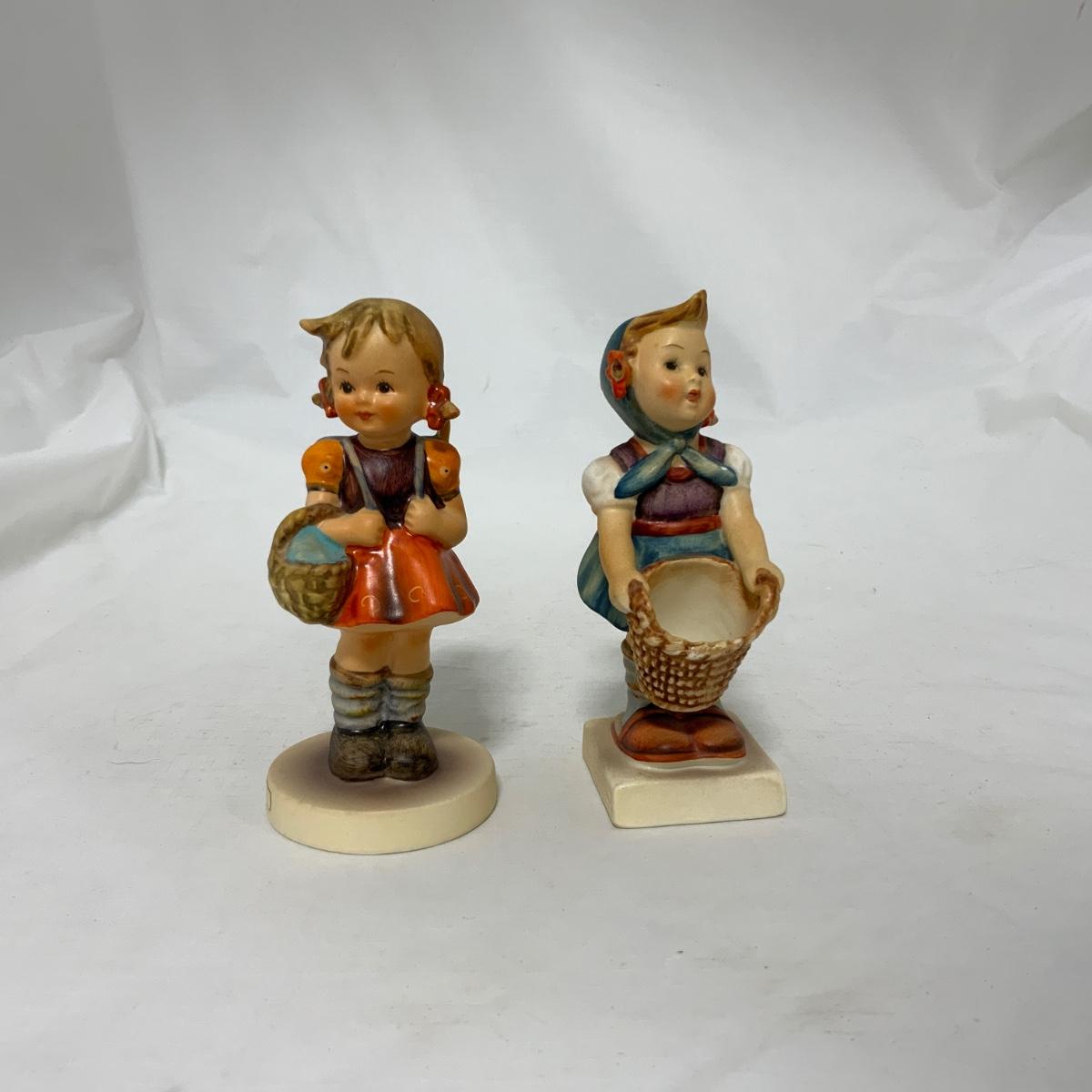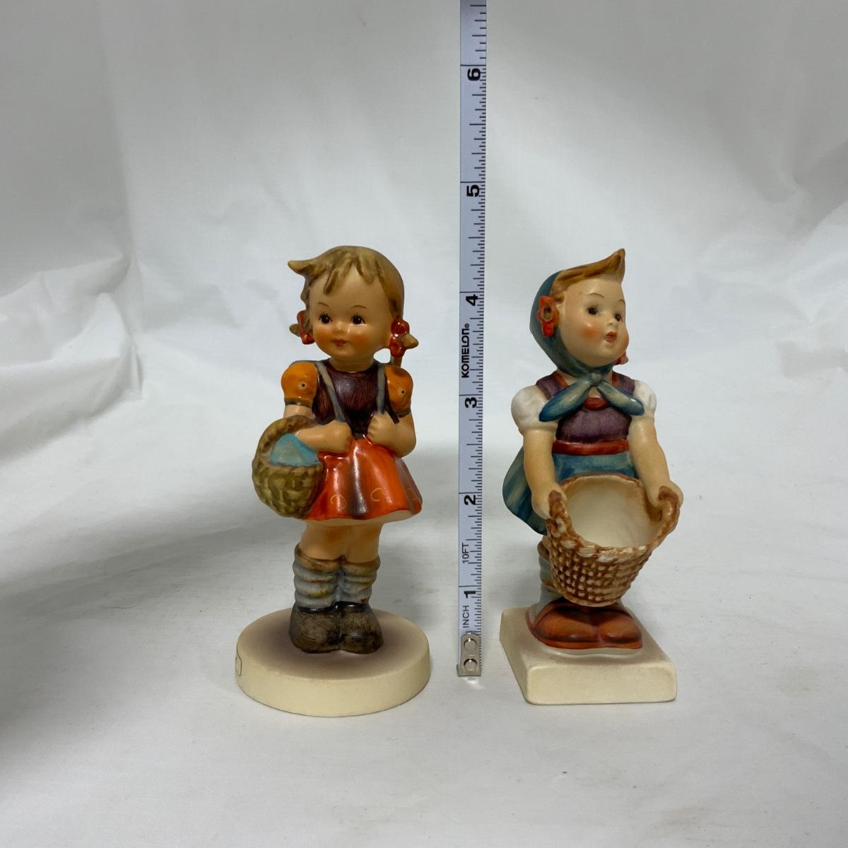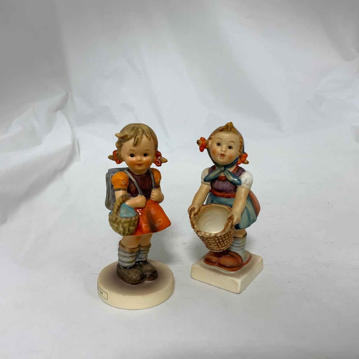 Two sweet little girl Hummels. School Girl (with backpack) Hum 81 2/0. Little Helper (with out-turned basket) Hum 73. Both different styles of the TMK-3 mark. Please see photos for details and condition. ::: Shipping is available on this lot. If you require shipping you must let us know at the close of the auction. We will coordinate with you after the item has been won. Shipping fees will include insurance up to or exceeding the value of all items being mailed. If you have any questions regarding this lot please contact the auctioneer either via this website, by direct email or by phone. PICK UP TIMES and other important information can be found in the TERMS and DESCRIPTION of the auction. Please take a look for pertinent information. Thanks!