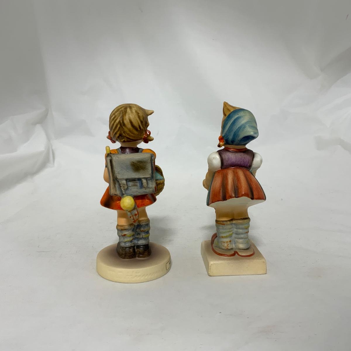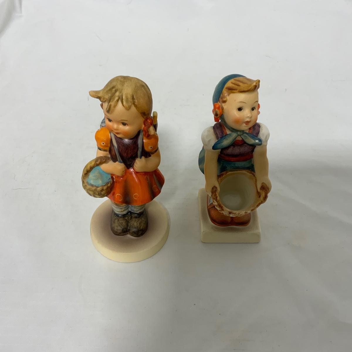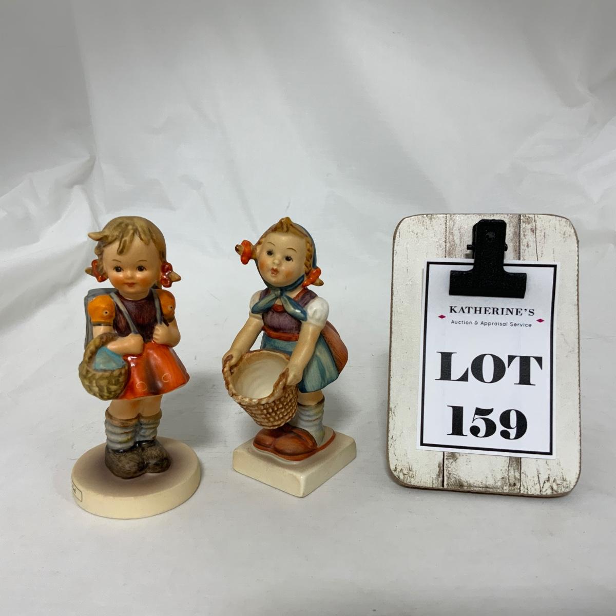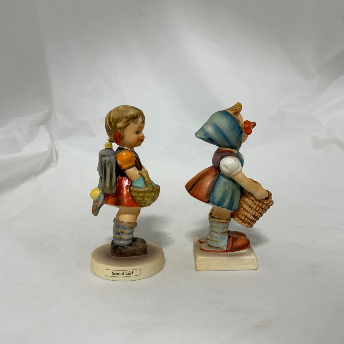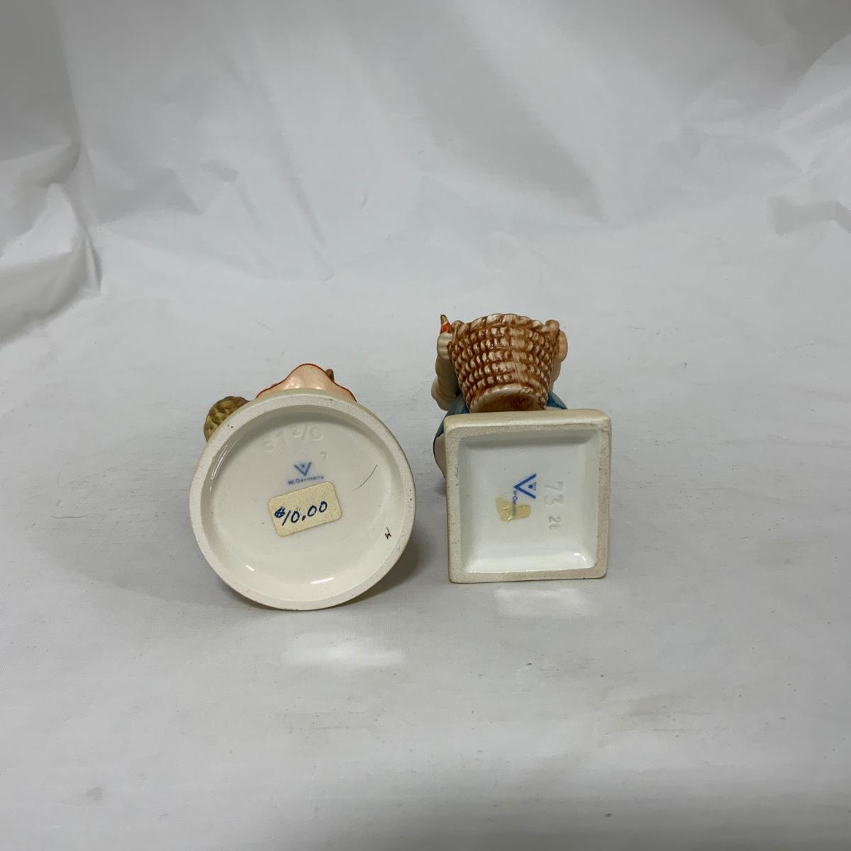 Two sweet little girl Hummels. School Girl (with backpack) Hum 81 2/0. Little Helper (with out-turned basket) Hum 73. Both different styles of the TMK-3 mark. Please see photos for details and condition. ::: Shipping is available on this lot. If you require shipping you must let us know at the close of the auction. We will coordinate with you after the item has been won. Shipping fees will include insurance up to or exceeding the value of all items being mailed. If you have any questions regarding this lot please contact the auctioneer either via this website, by direct email or by phone. PICK UP TIMES and other important information can be found in the TERMS and DESCRIPTION of the auction. Please take a look for pertinent information. Thanks!