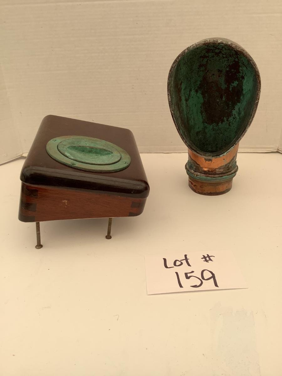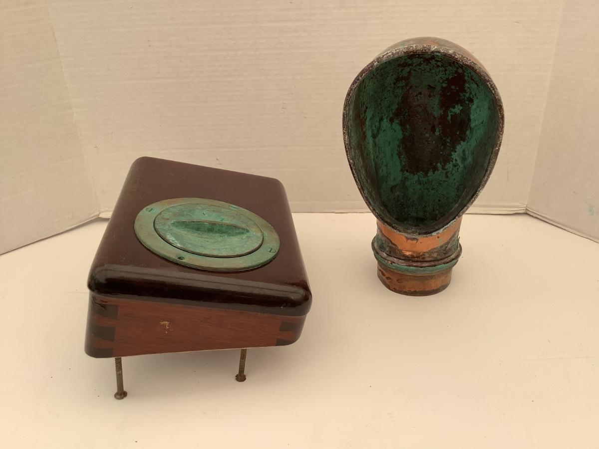 159 Vintage Brass/Copper Boat Cowl Air Vent & Teak Dorade Box