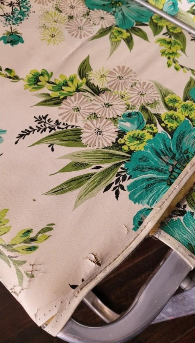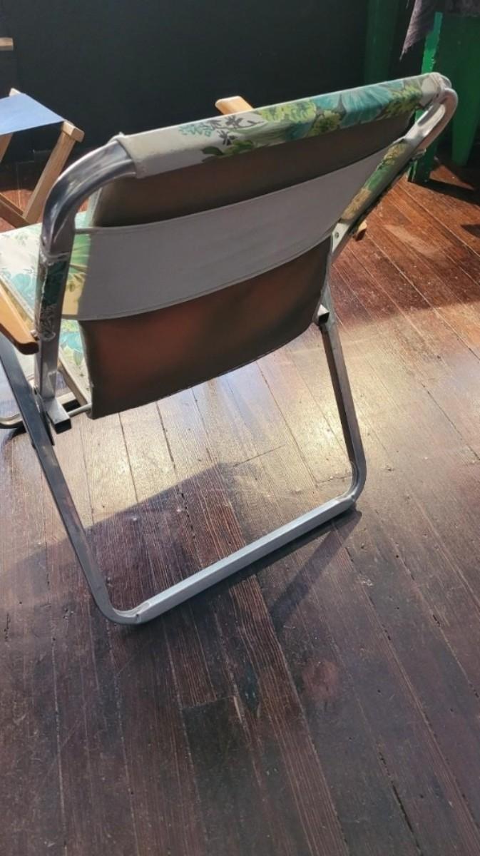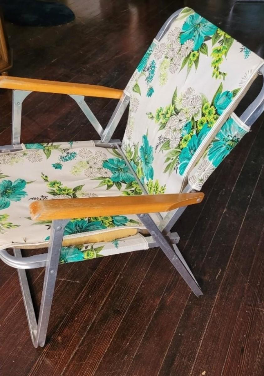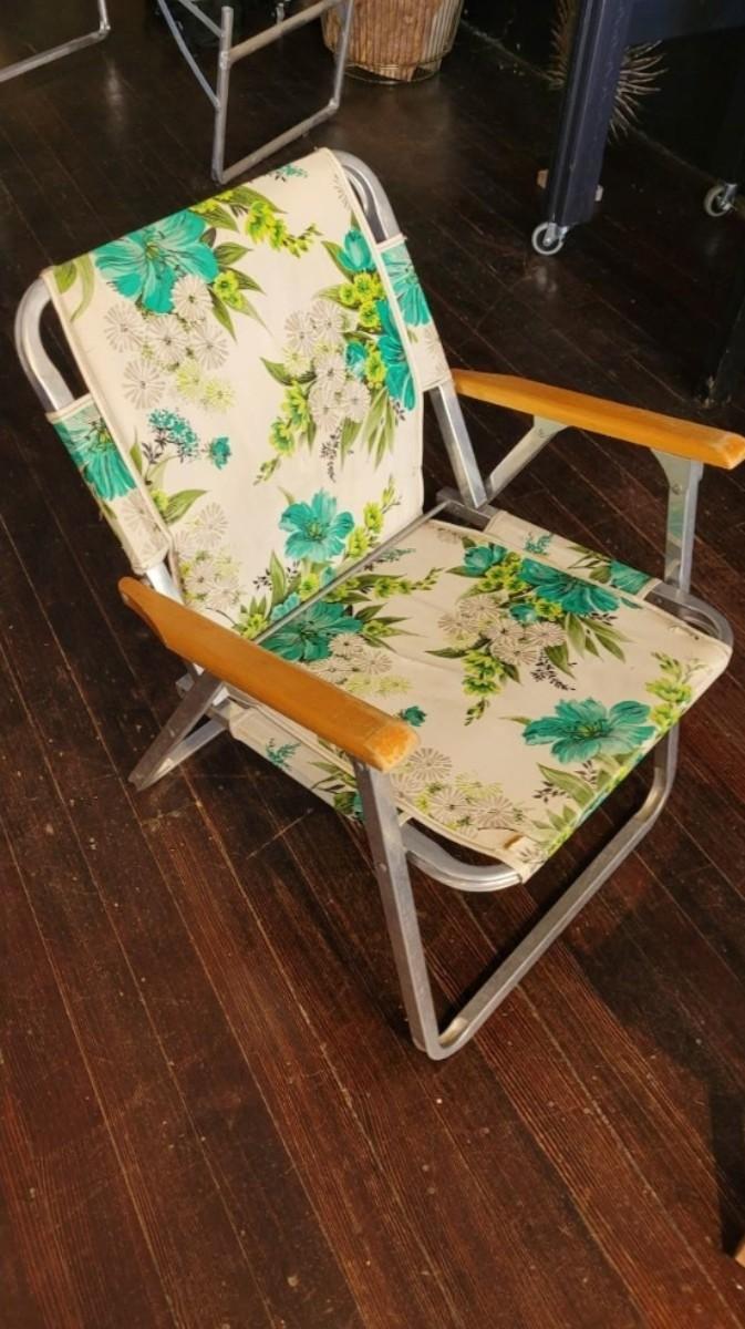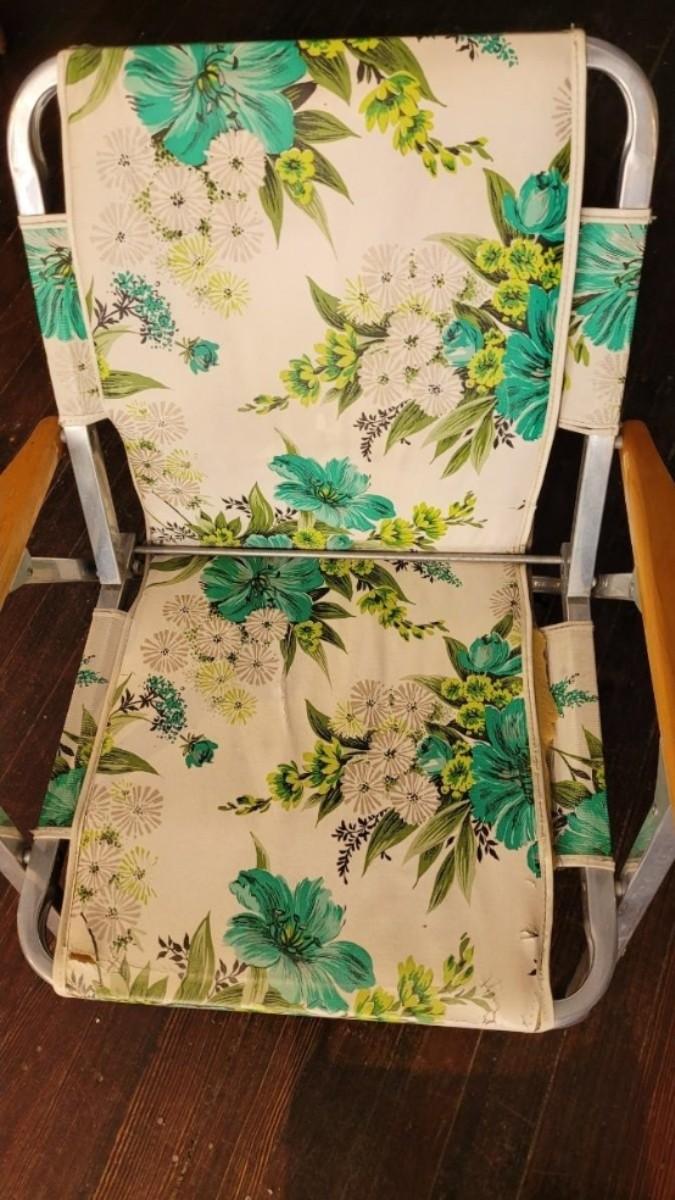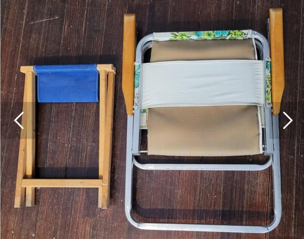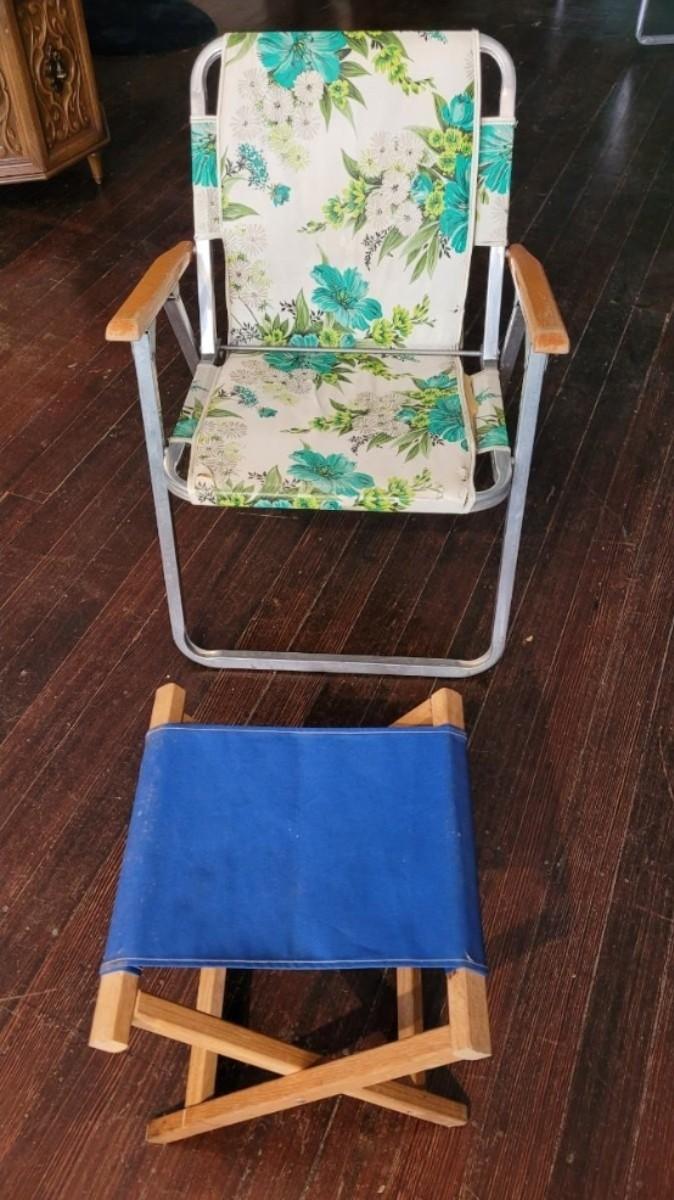 159: Vintage Padded Lawn Chair and Canvas Stool