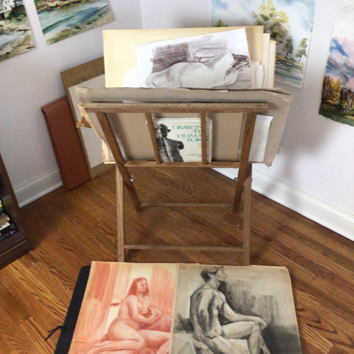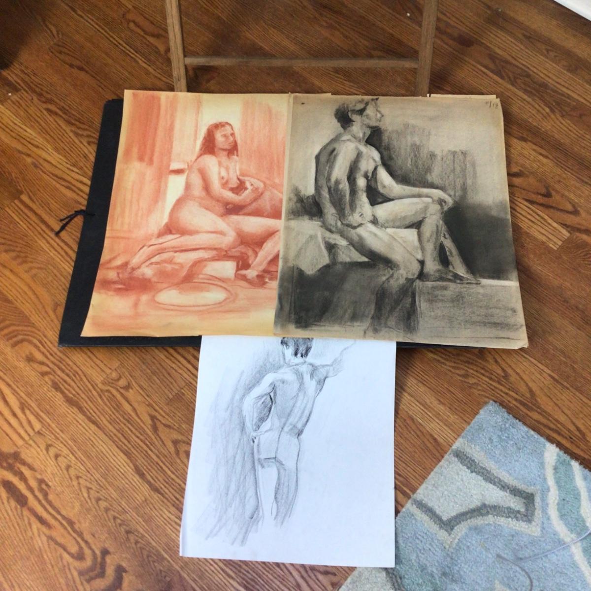 There are approximately 40 artist nude sketches, portfolio carrying case and a book about drawing the human form. All are one of a kind sketches from local artist Marlen Binder.