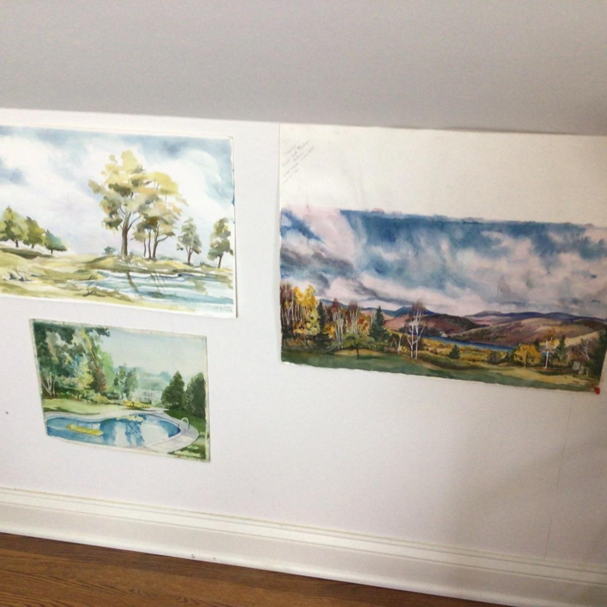 There are 3 paintings in this lot, the Beach, Pool and Canyon. All are original one of a kind art pieces by local artist Marlen Binder.