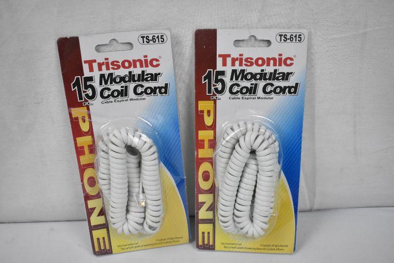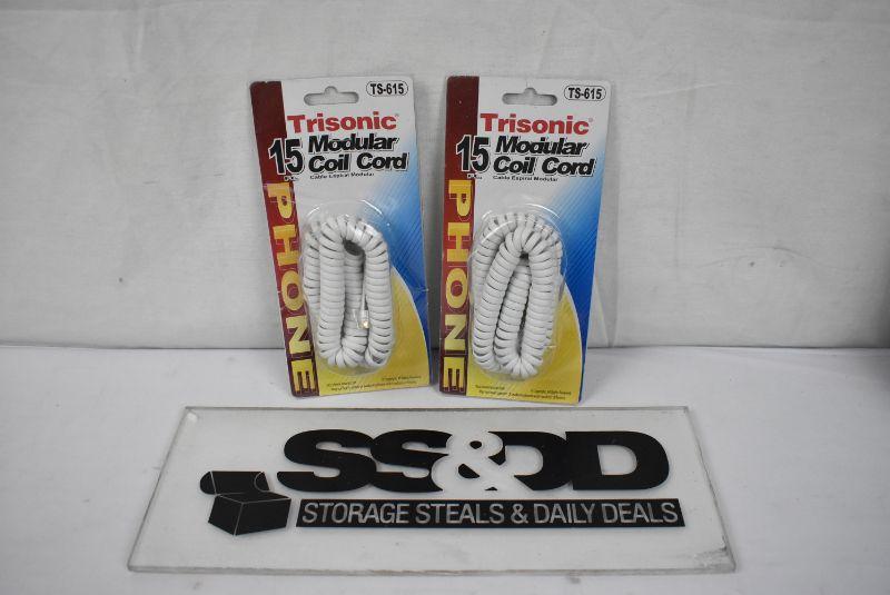 15ft Modular Coil Cords for Phones, Qty 2 - New