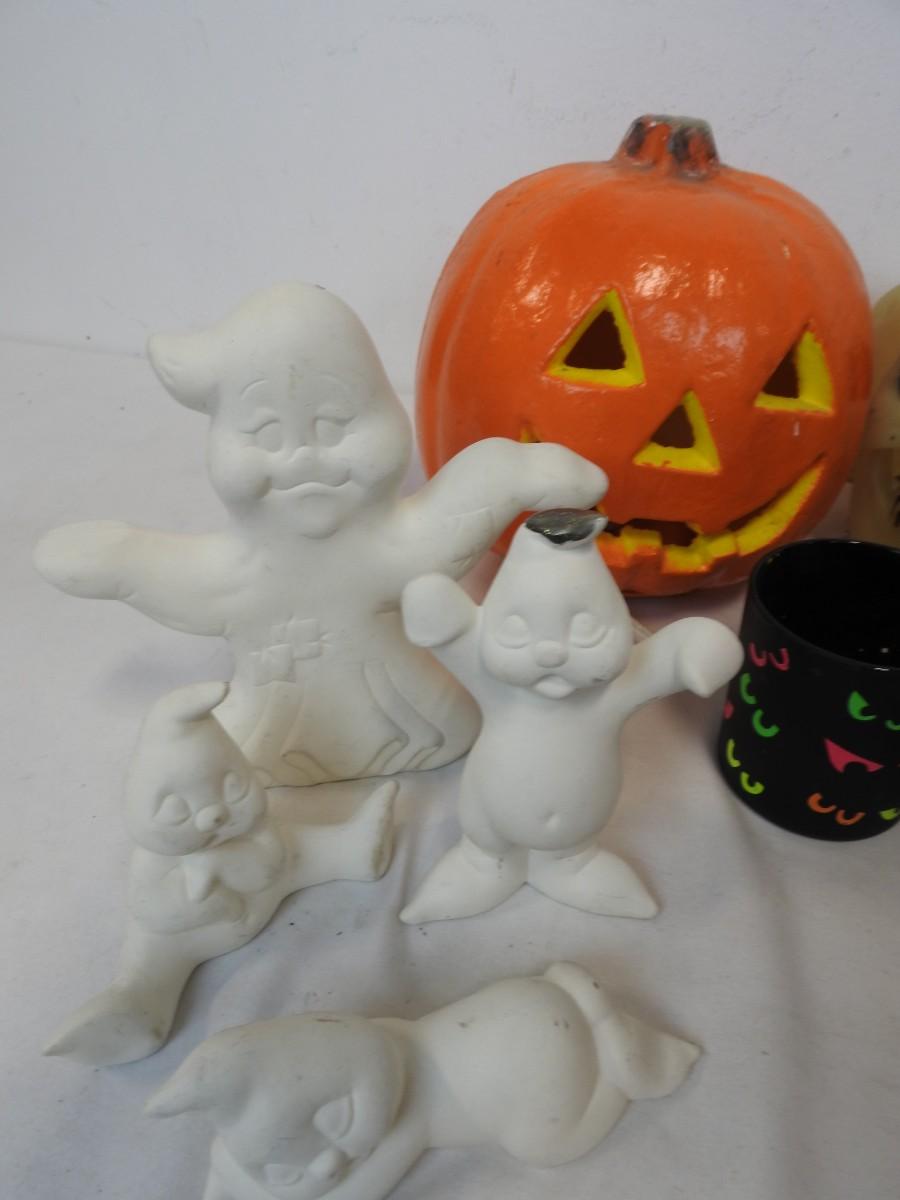 15pc Halloween Lot: Light Up Jack-o-Lantern-WORKS, Shelf Sitters, Ceramic Ghosts