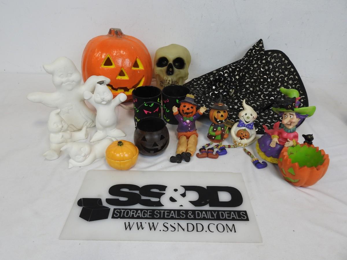 15pc Halloween Lot: Light Up Jack-o-Lantern-WORKS, Shelf Sitters,Tealight Holders, Witch Hat, Ceramic Ghosts