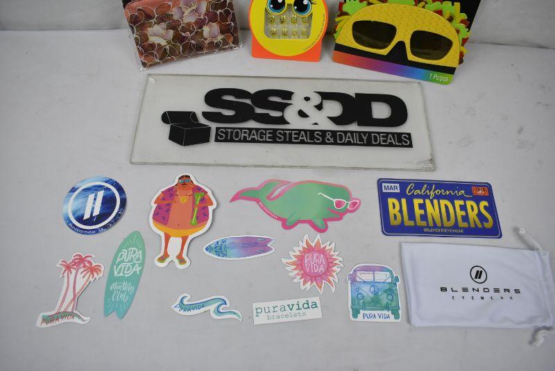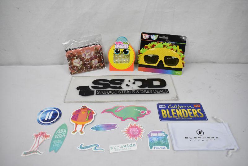 15 pc Kids/Tweens: Coin Purse, Emoji Fake Nails, Taco Sunglasses, 7 Pura Vida Stickers, 4 Blenders Stickers, 1 Blenders Bag - New