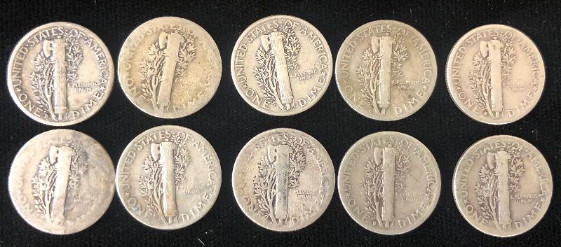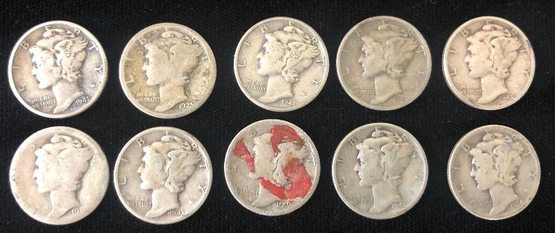 #16 (10) MERCURY DIMES 90% US Silver Pre 1964