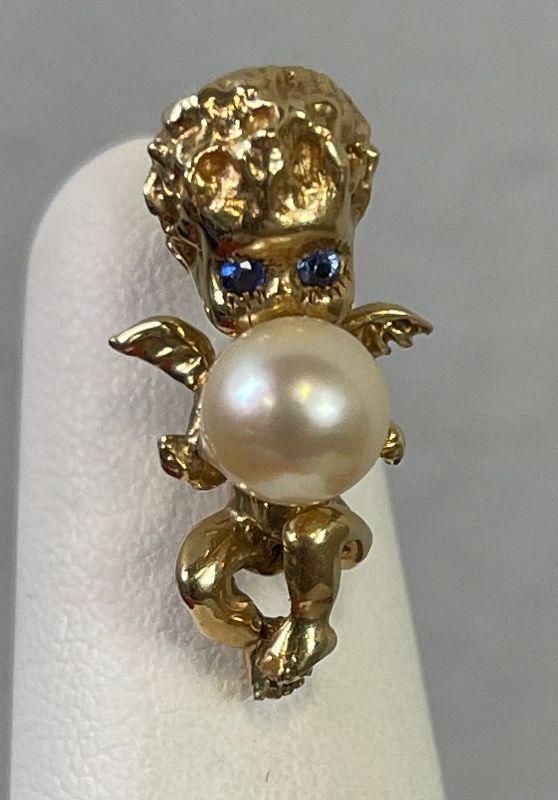 #16 14K Angel w/Pearl Tie Tack 5.7 g