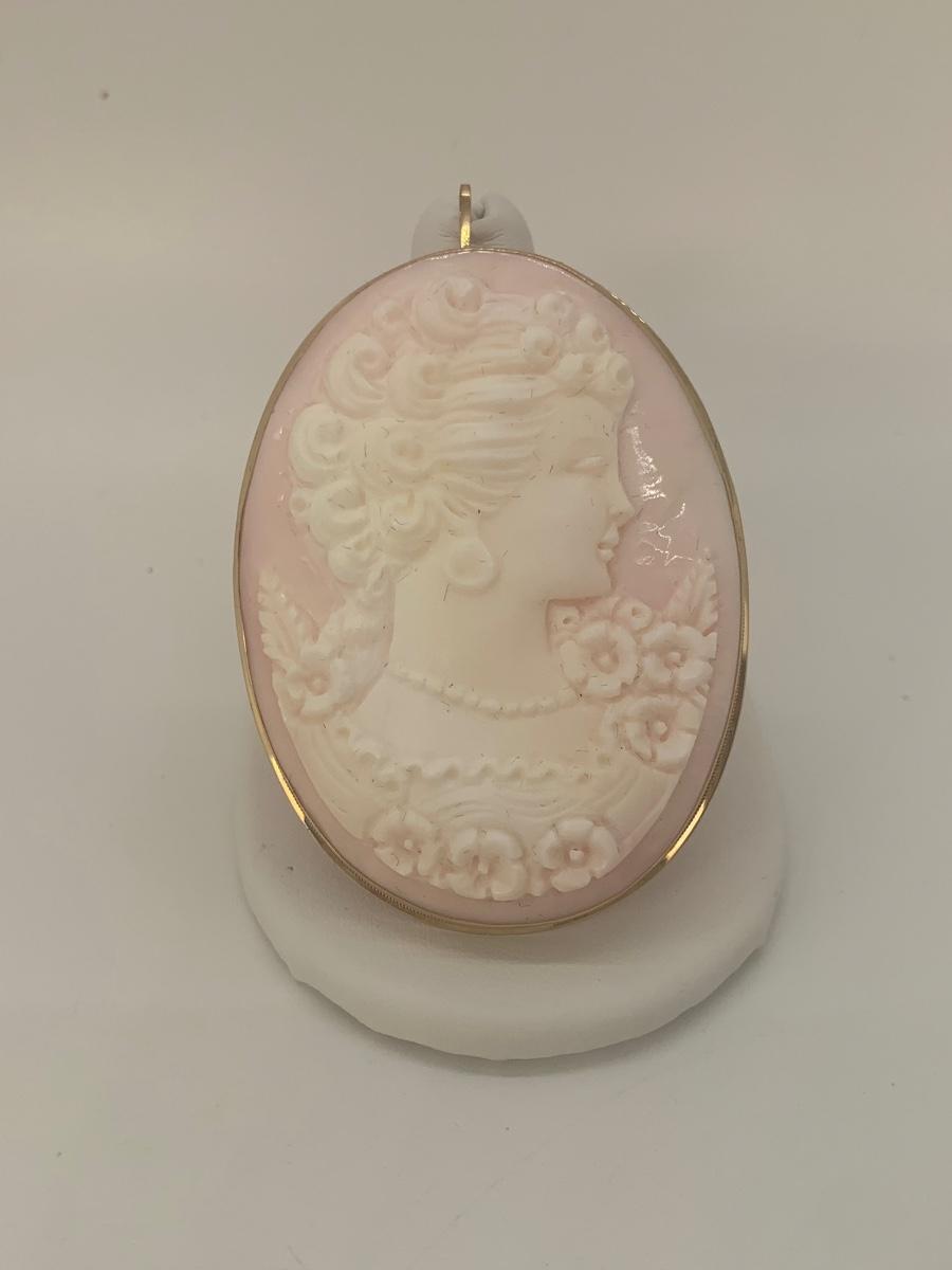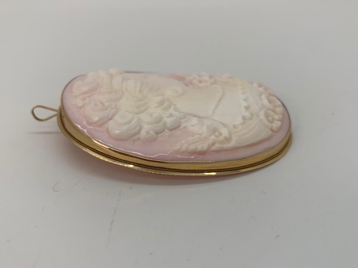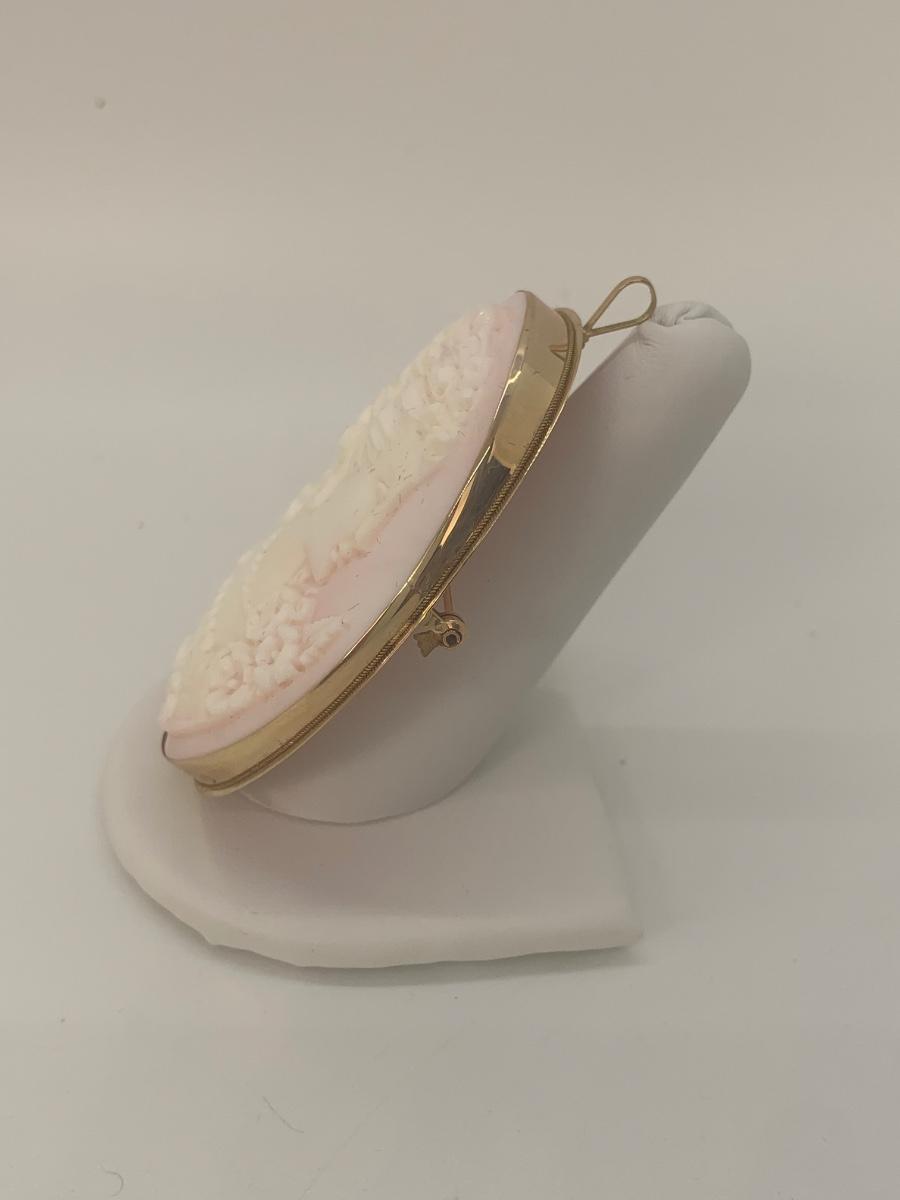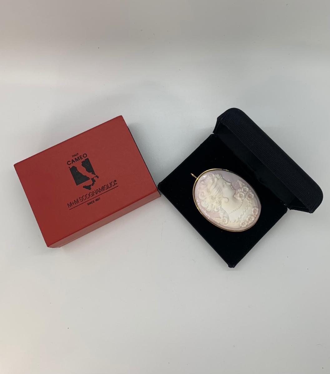16: New with box 14k pink conch shell M&M Scognamiglio Cameo Pendant/Brooch