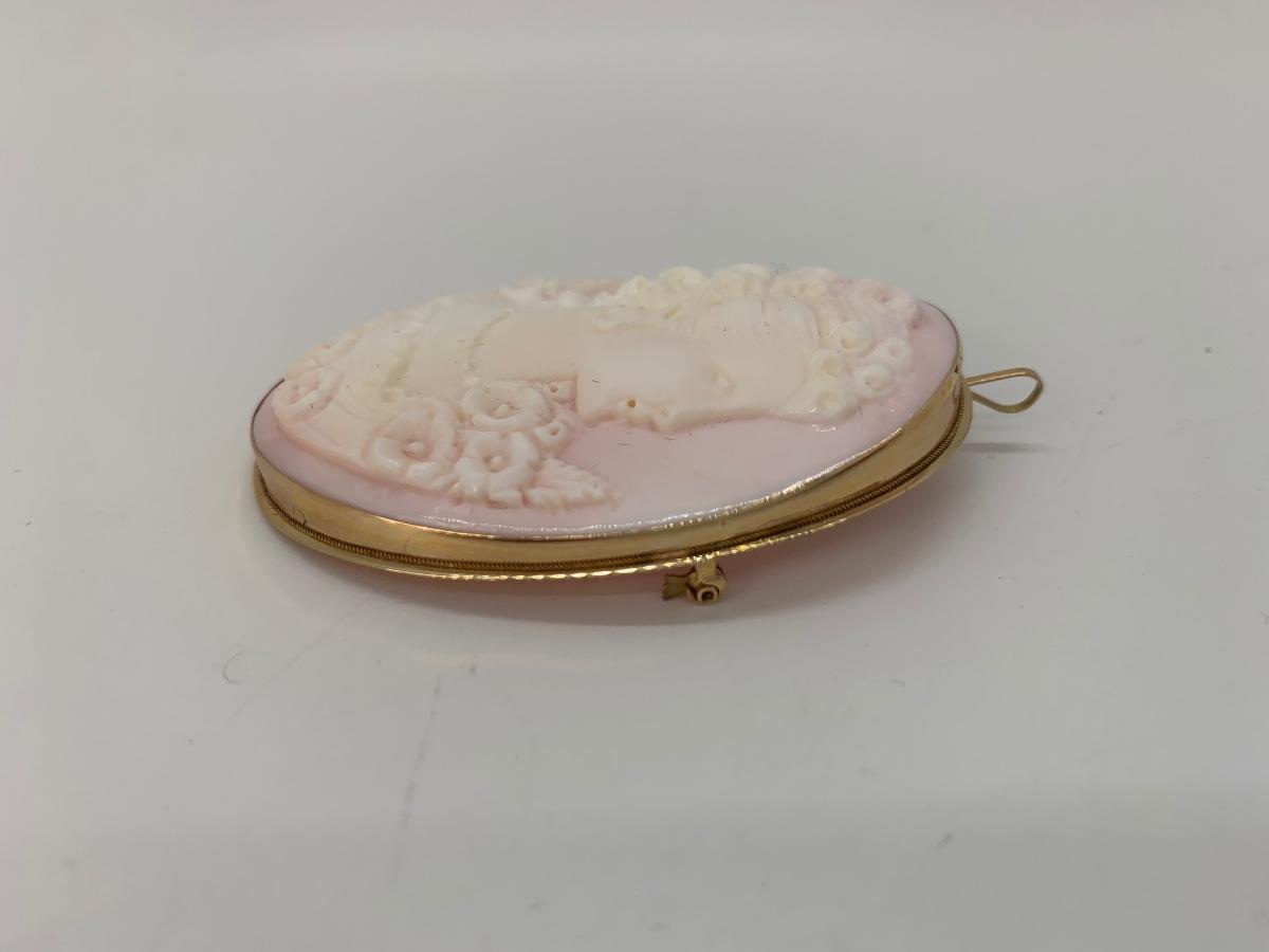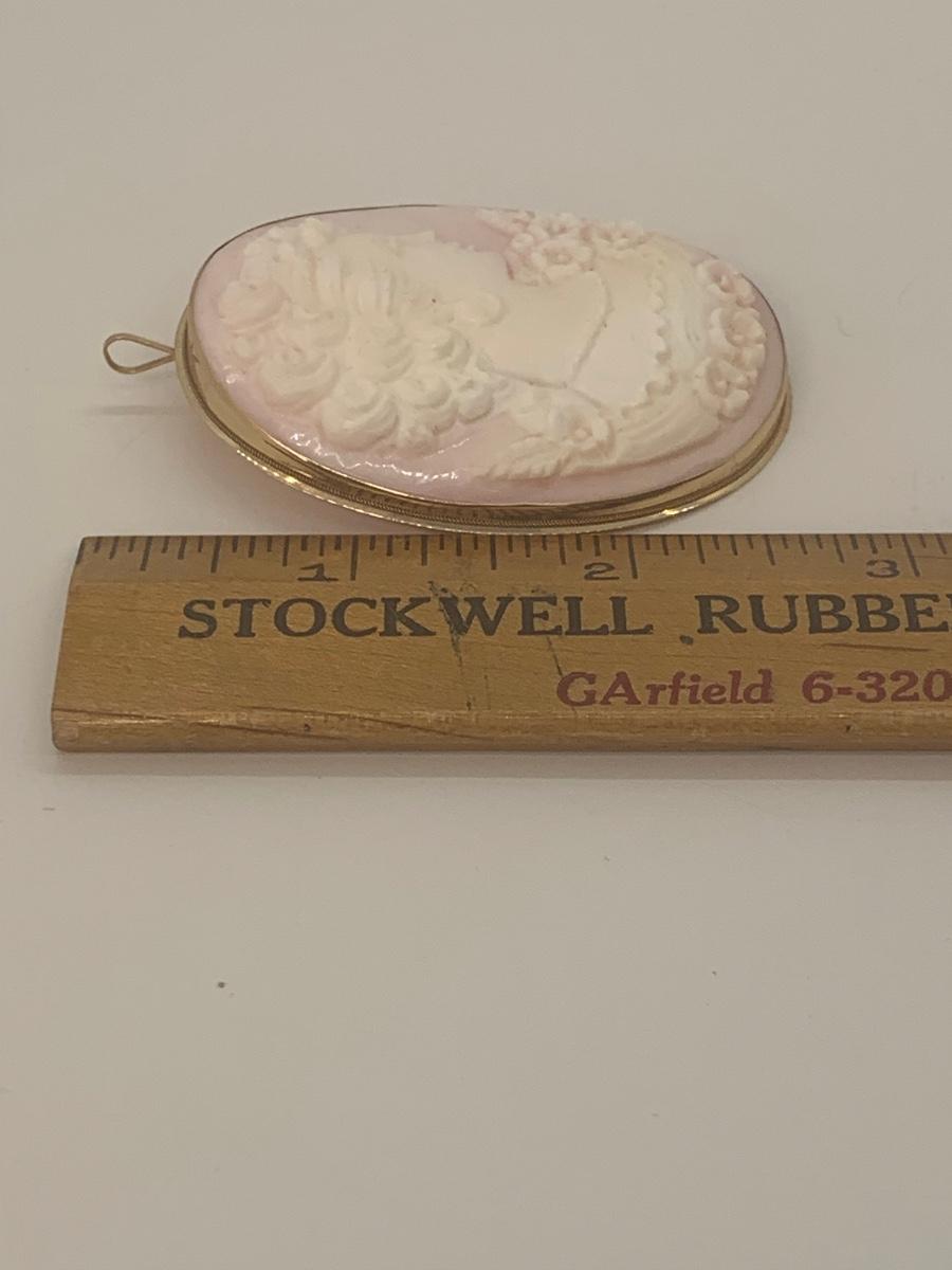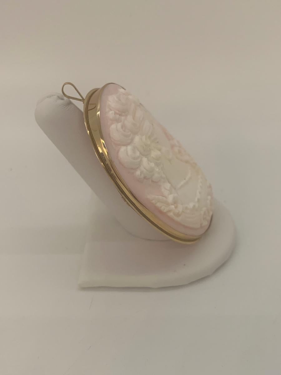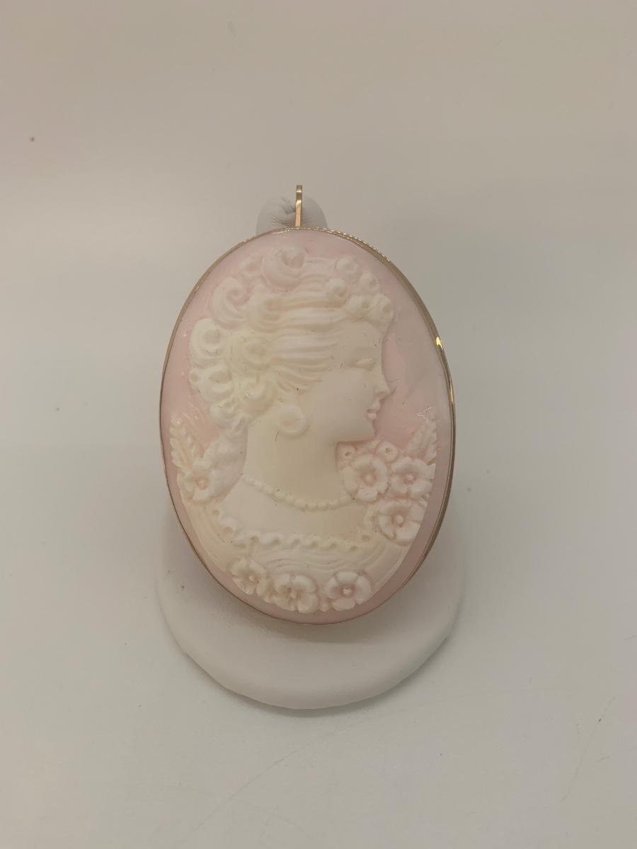 16: New with box 14k pink conch shell M&M Scognamiglio Cameo Pendant/Brooch
