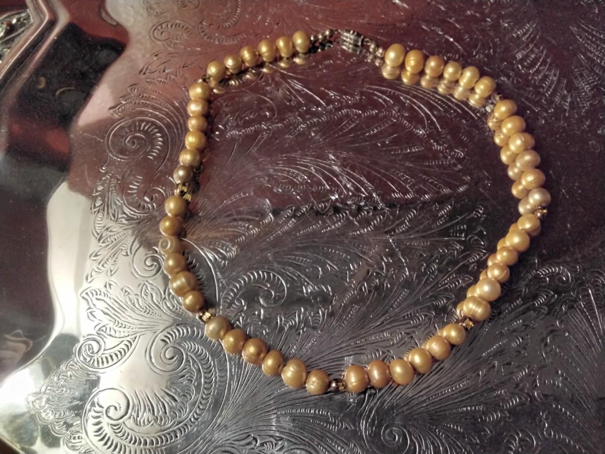 16" 8mm Gold Pearls With Citrine in between barrel clasp