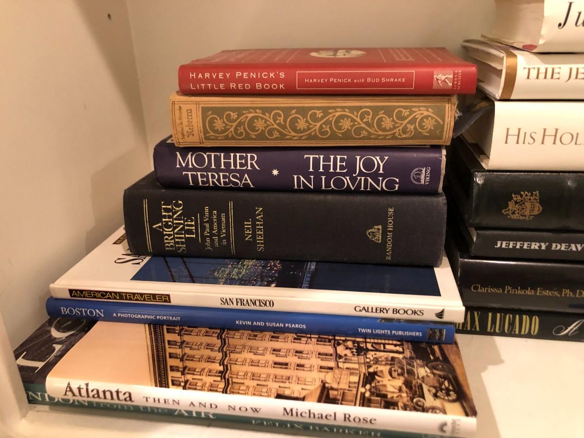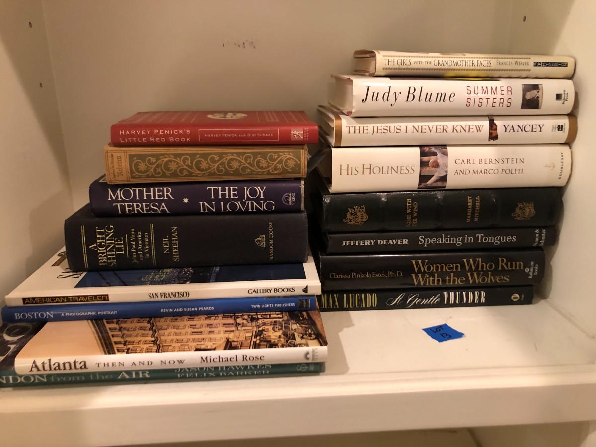 Coffee Table Books: Atlanta Then and Now, Boston a photographic portrait, American Traveler "San Francisco". Assorted other books: Summer Sisters, Women Who Run With the Wolves, The Girls with the Grandmother Faces, and more!