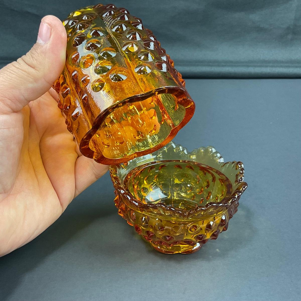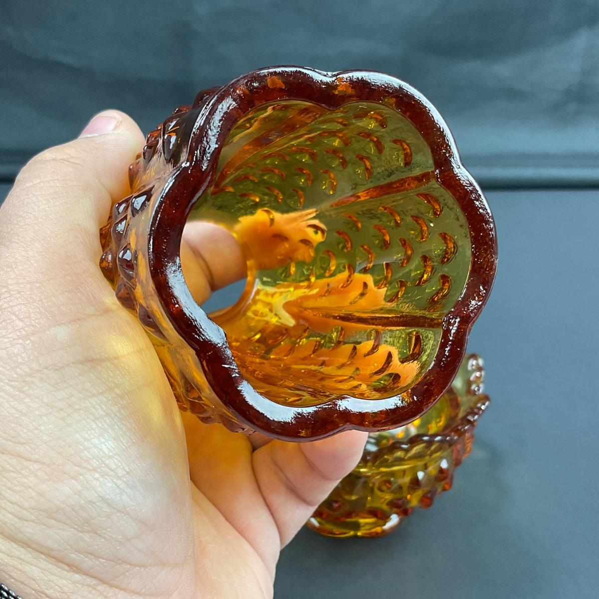 -16- FENTON | Vintage Hobnail Amber Fairy Lamp