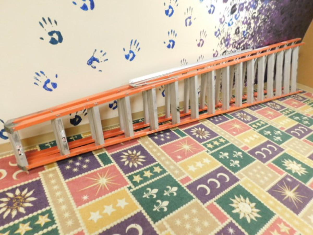 16' Fiberglass Contractor's Ladder Expect some wear or scratches to finish. Shipping option available via freight or local mover at Buyer's expense. Buyer must have all shipping scheduled within the stated dates and times of pickup. Recommended local mover is Beaty Bros. Moving 828-201-2982