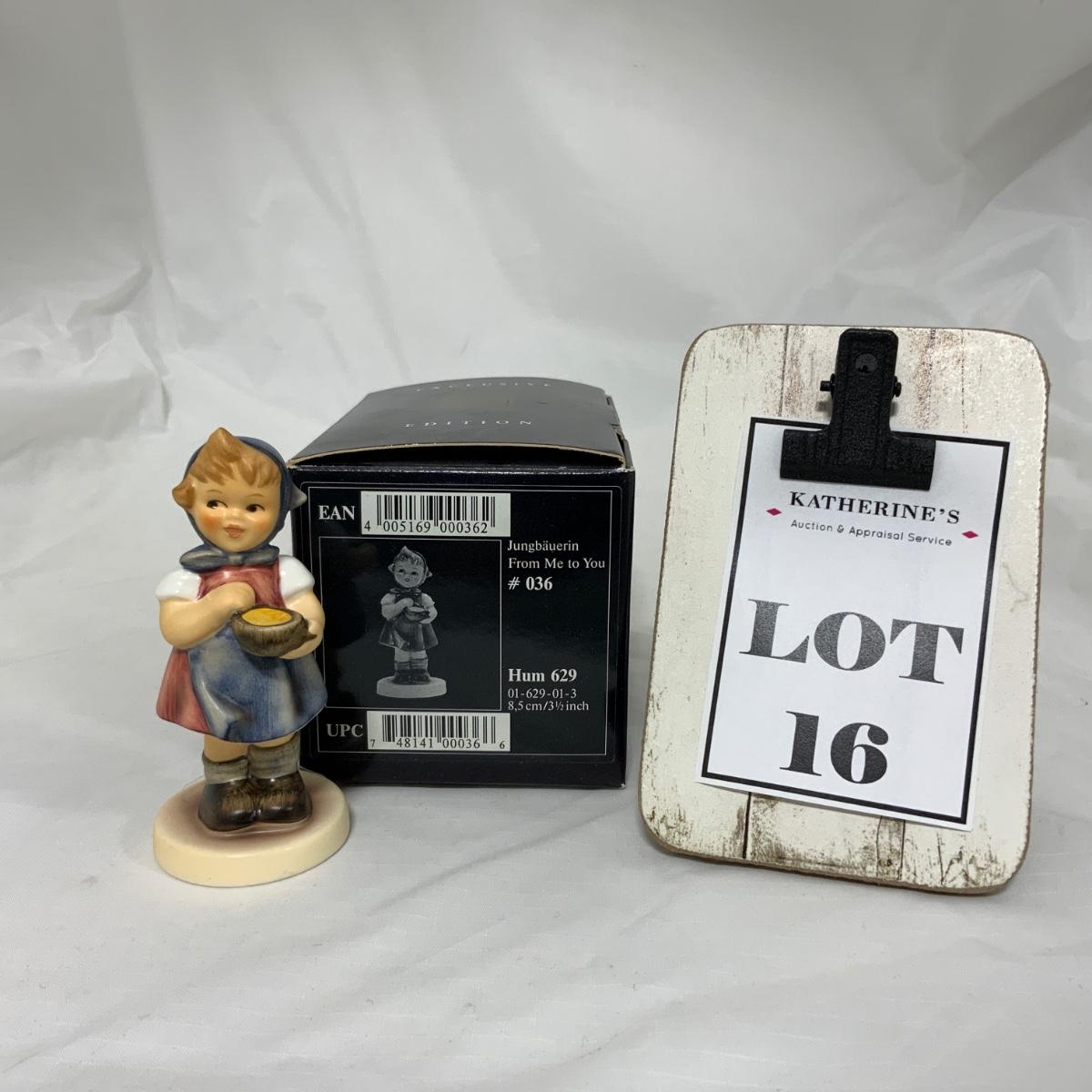 I’m not sure what is in her bowl, but I’m hoping it’s queso. From Me to You, Hum 629, 3 1/2 inches tall. TMK-7. Figure comes with the original box. Please see photos for details and condition. - No Cracks, Chips or Crazing noted. ::: Shipping is available on this lot. If you require shipping you must let us know at the close of the auction. We will coordinate with you after the item has been won. Shipping fees will include insurance up to or exceeding the value of all items being mailed. If you have any questions regarding this lot please contact the auctioneer either via this website, by direct email or by phone. PICK UP TIMES and other important information can be found in the TERMS and DESCRIPTION of the auction. Please take a look for pertinent information. Thanks!