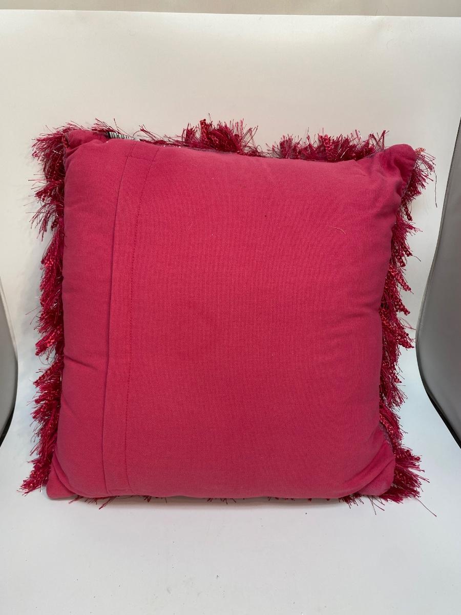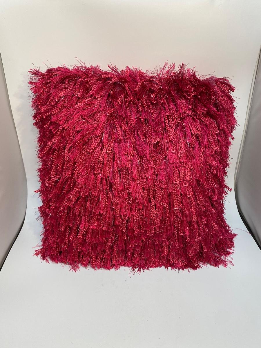 Furry Dark Pink Magenta Throw Pillow. About 16" square. In good used condition.