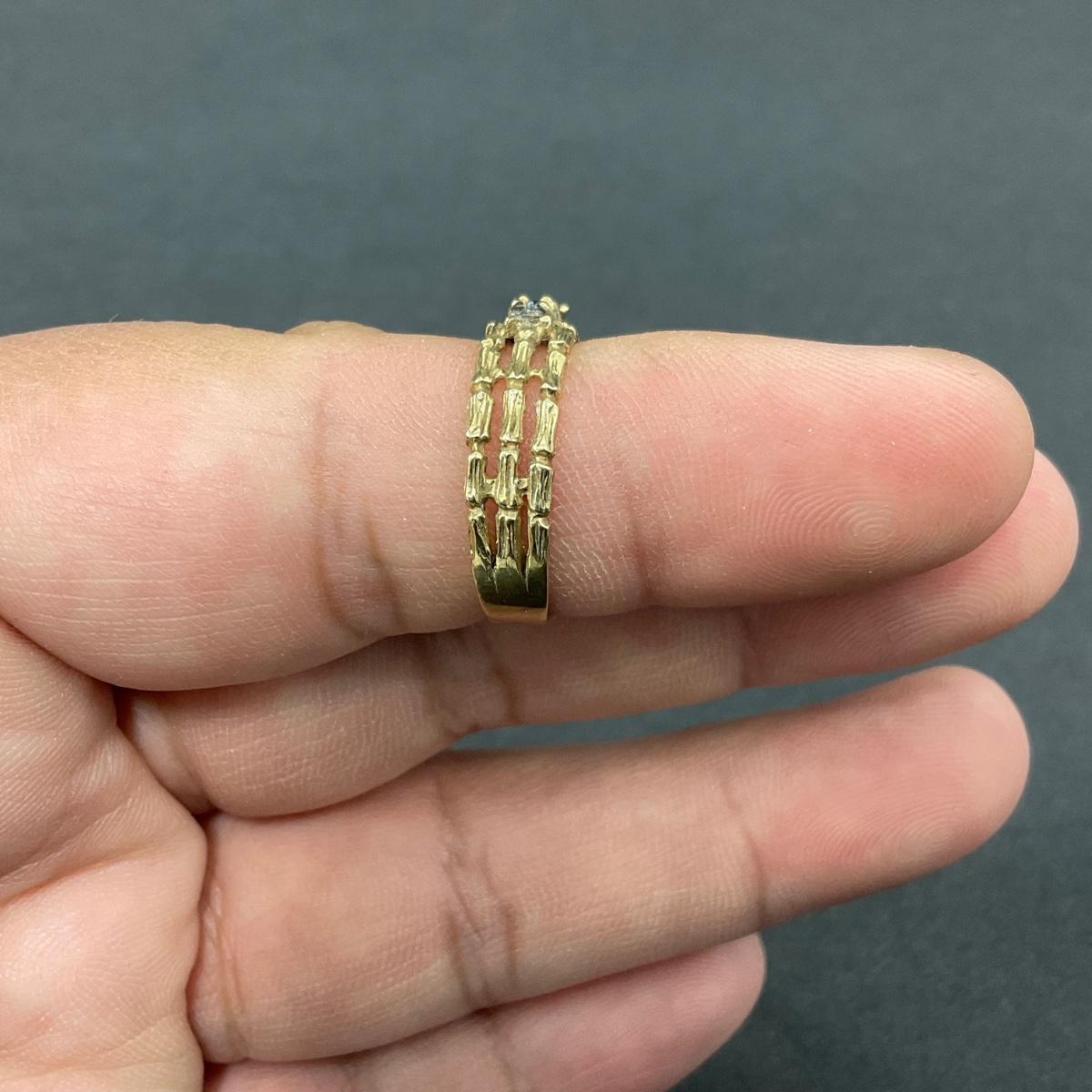 One vintage 10k marked and tested gold ring with missing stones, finish this ring or invest in scrap gold. This ring is a size 6.5. The total weight of this piece is 1.3 DWT. Please see photos for details and condition. Any condition statement is given as a courtesy to a client, is an opinion, and should not be treated as a statement of fact. Reference to condition written, oral or within a condition report shall not be regarded as a full account of condition and may not include all defects, alterations, or restorations. Absence of a condition report does not imply a lot is flawless or lacking imperfections or damage. Katherine’s Auction & Appraisal Service shall have no responsibility for any error or omission. Returns shall not be accepted on the basis of condition. ::: Shipping is available on this lot. If you require shipping you must let us know at the close of the auction. We will coordinate with you after the item has been won. Shipping fees will include insurance up to or exceeding the value of all items being mailed. If you have any questions regarding this lot please contact the auctioneer either via this website, by direct email or by phone. PICK UP TIMES and other important information can be found in the TERMS and DESCRIPTION of the auction. Please take a look for pertinent information. Thanks!