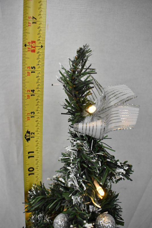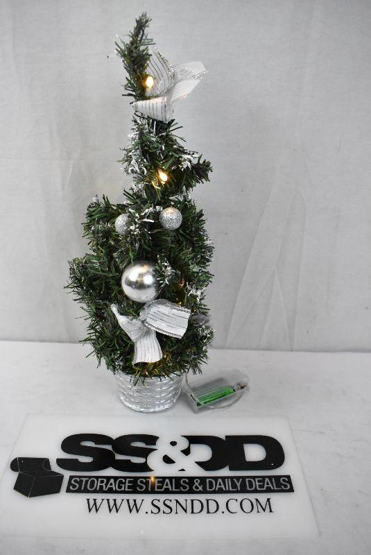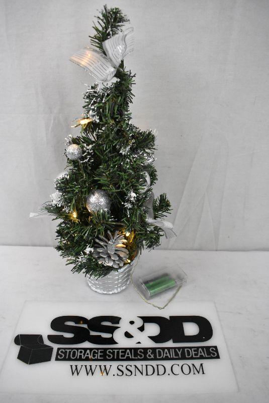 16" Green Pre-lit Tree with Silver Ornaments - New