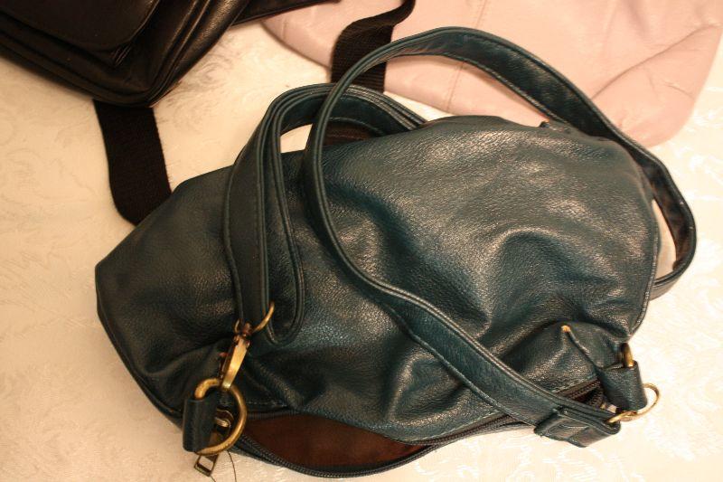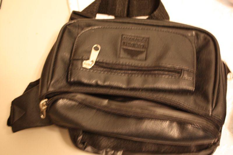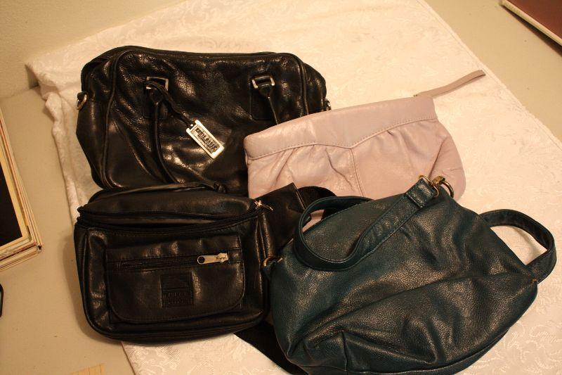 Eddie Bauer black leather handbag, tan leather handbag, green leather handbag, Trailmarker equipment black fannypack