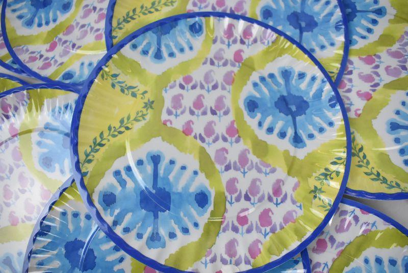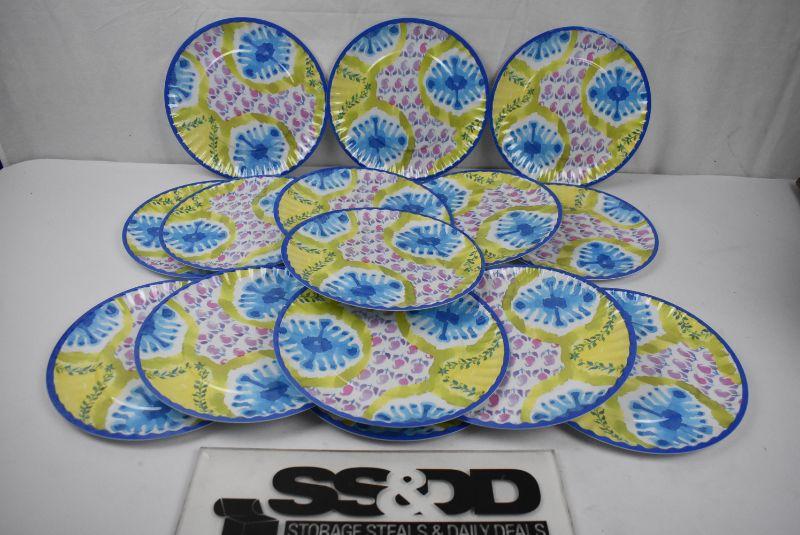 16 Hard Plastic Plates by Nicole Miller. Floral Watercolor Design