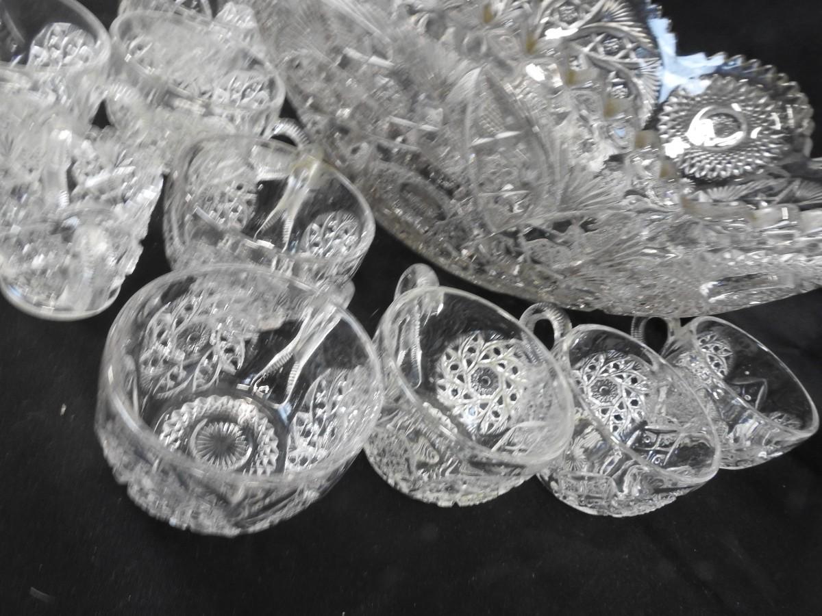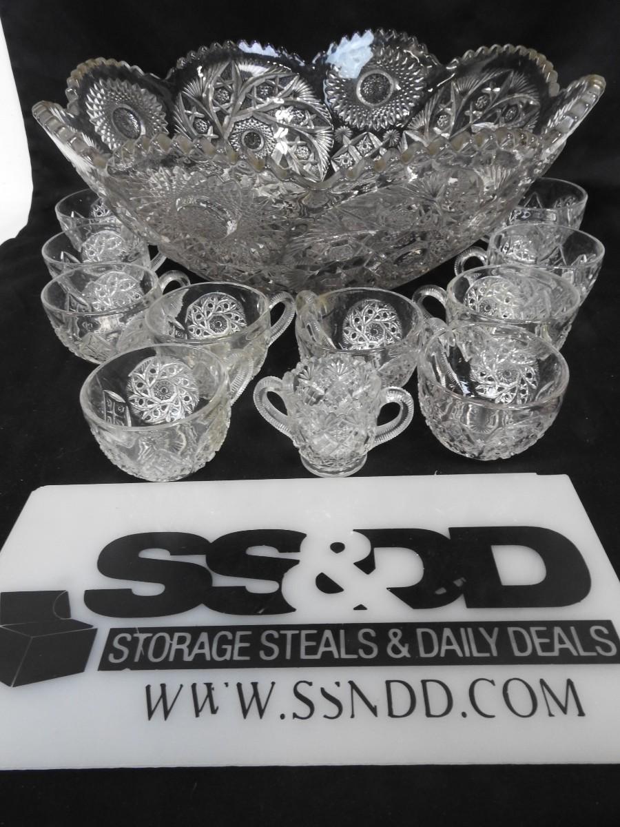 16" Large Punchbowl w/ 10 Cups & Matching Toothpick Holder
