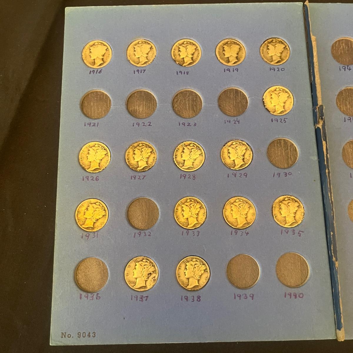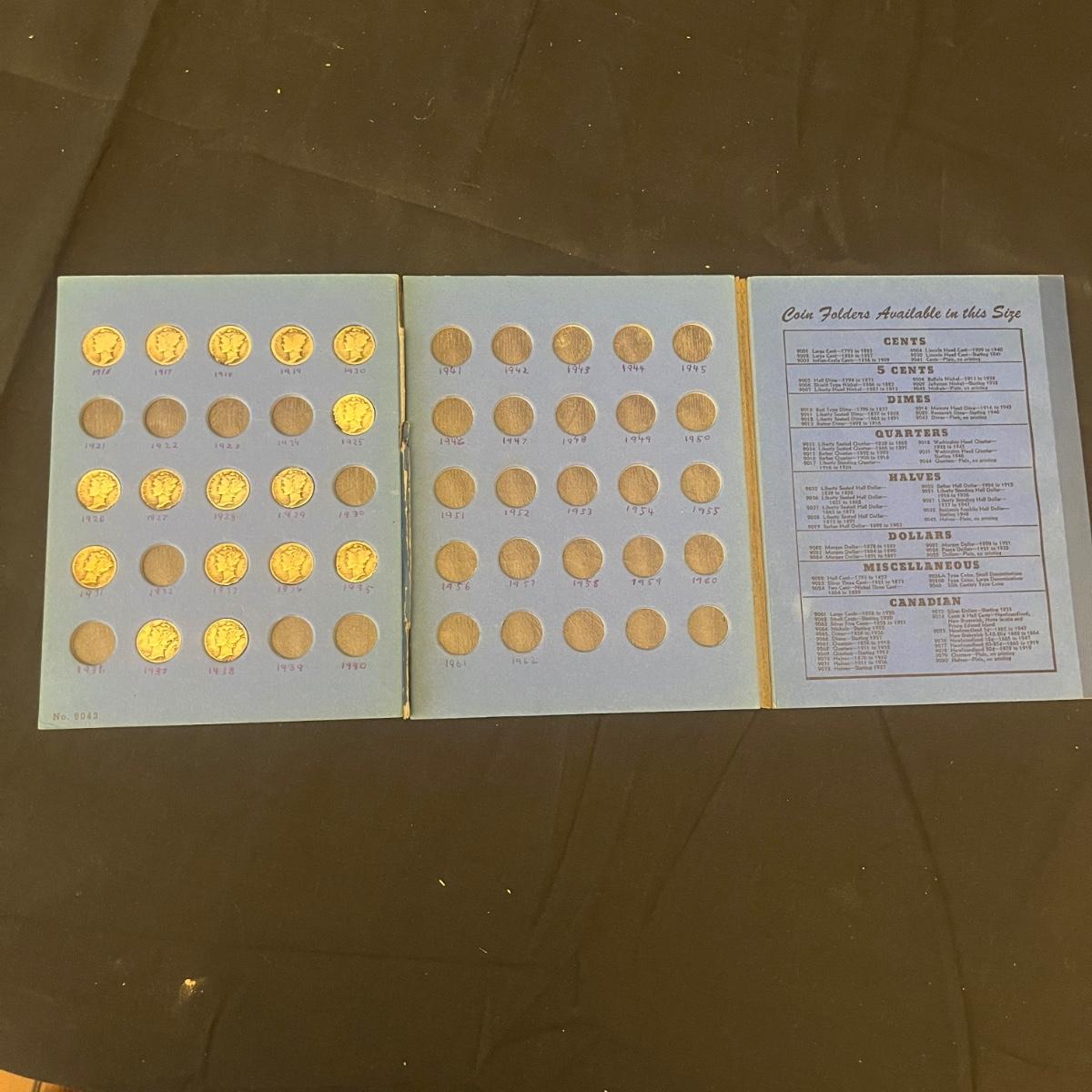 Lot includes 16 Mercury dimes with the oldest from 1916. Dimes are worn and not been graded and we do not guarantee condition. Coin holder has come apart, see pictures. All sales are final, no refunds so please bid accordingly.