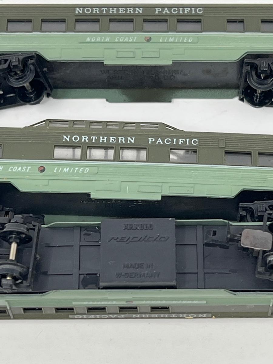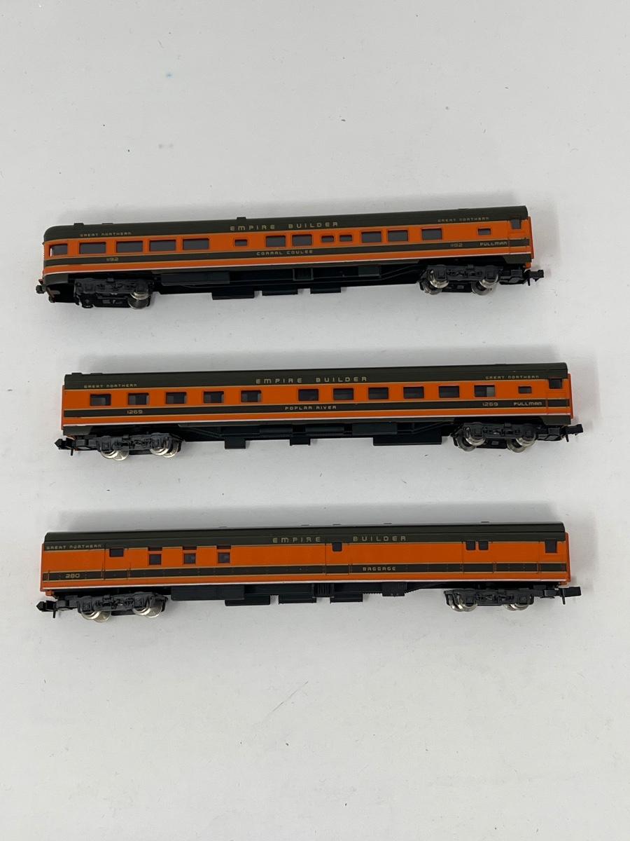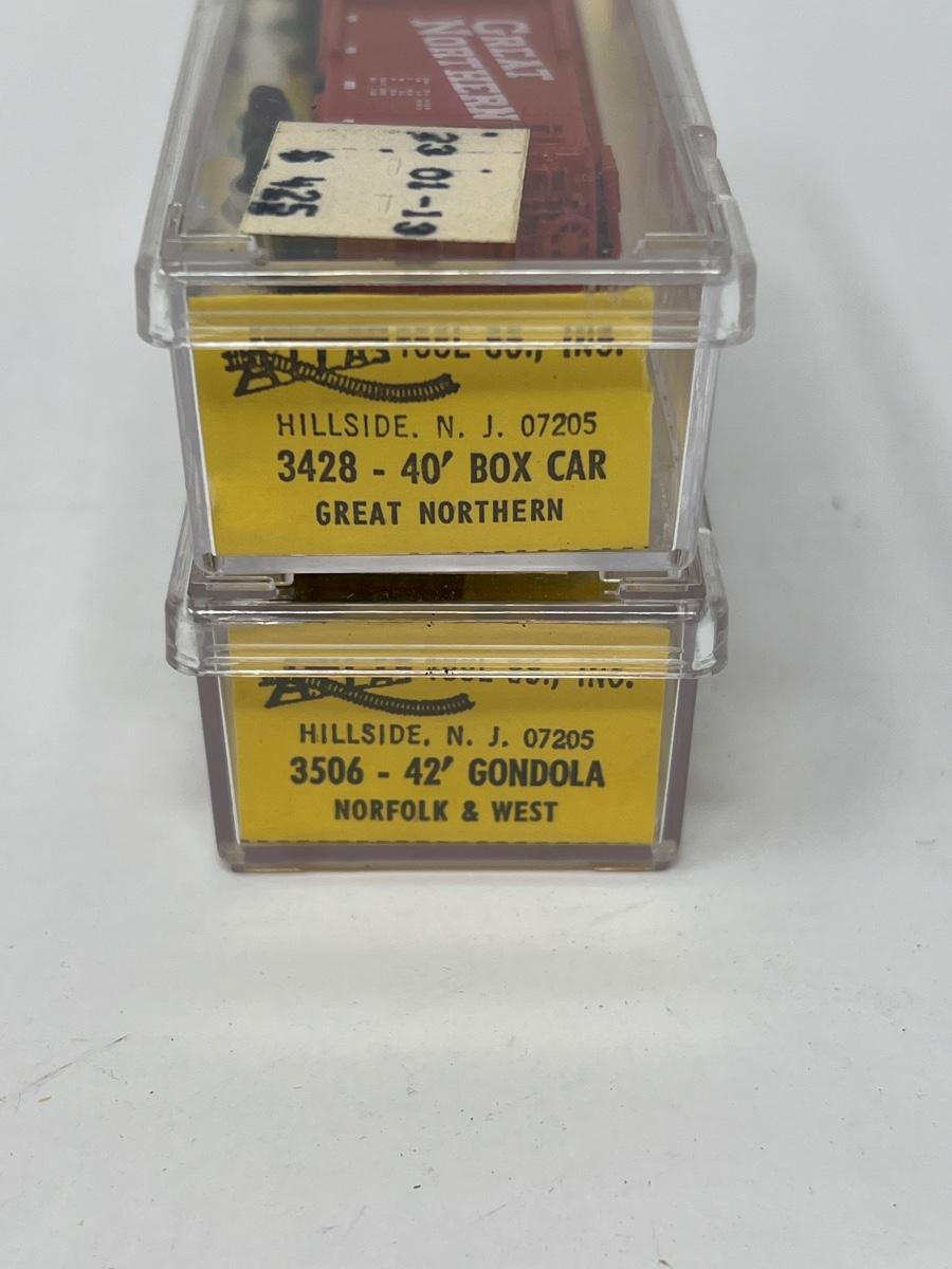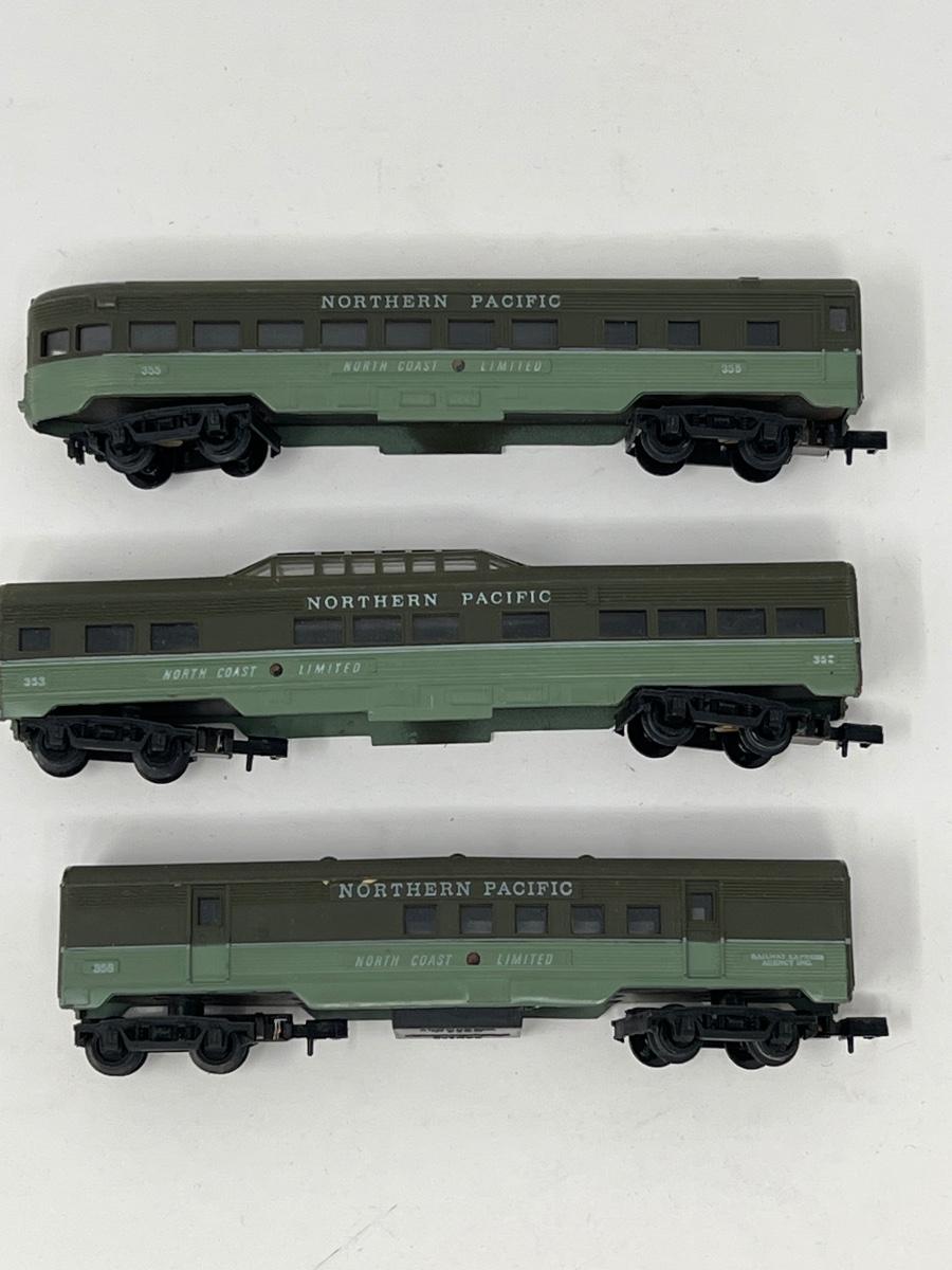 Various vintage N scale train cars and engines.