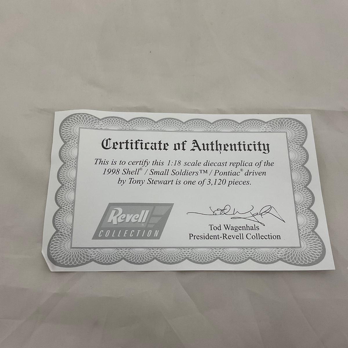 One NASCAR die cast 1:18 scale 1998 Shell and Small Soldiers Pontiac figure. Tony Stewart. Comes with a Certificate of Authenticity. Please see photos for details and condition. ::: Shipping is available on this lot. If you require shipping you must let us know at the close of the auction. We will coordinate with you after the item has been won. Shipping fees will include insurance up to or exceeding the value of all items being mailed. If you have any questions regarding this lot please contact the auctioneer either via this website, by direct email or by phone. PICK UP TIMES and other important information can be found in the TERMS and DESCRIPTION of the auction. Please take a look for pertinent information. Thanks!