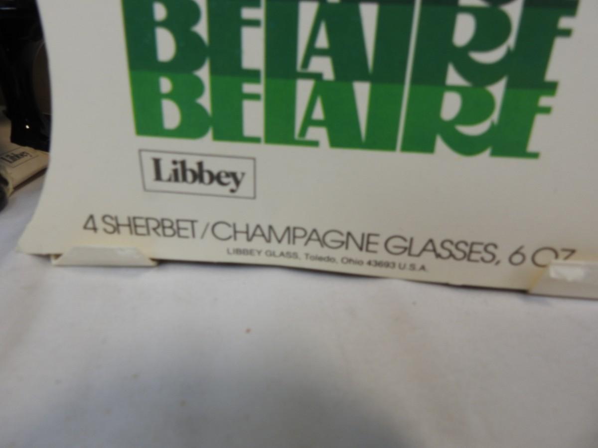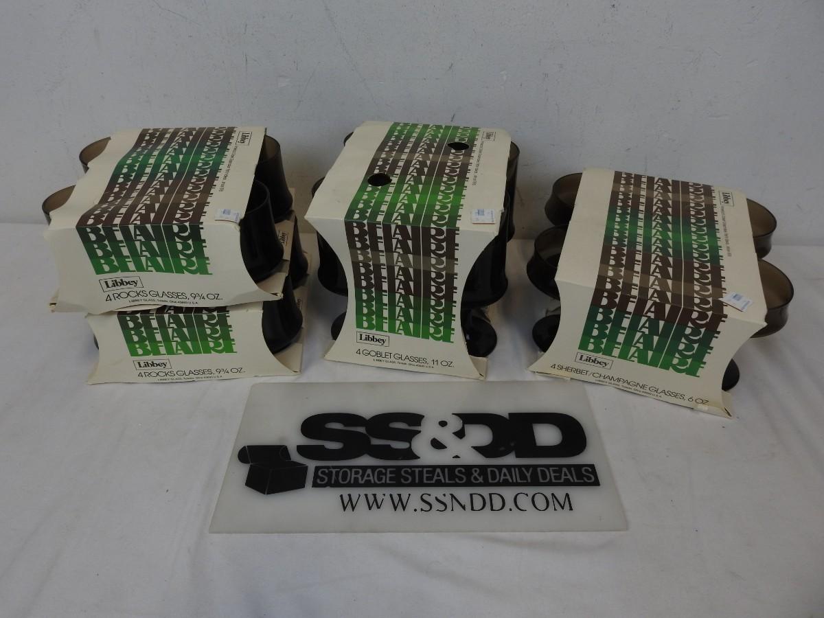 16 New Old Stock Libbey Glasses, Belaire, 8 Rocks Glasses, 4 Goblets, 4 Sherbet Glasses, Vintage