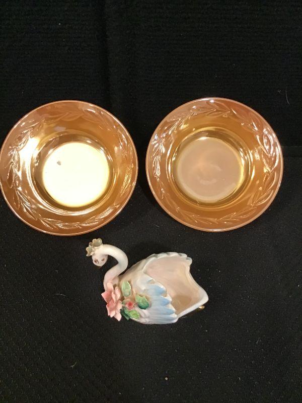 #16 - Norcrest (Japan) swan and two Fire King bowls