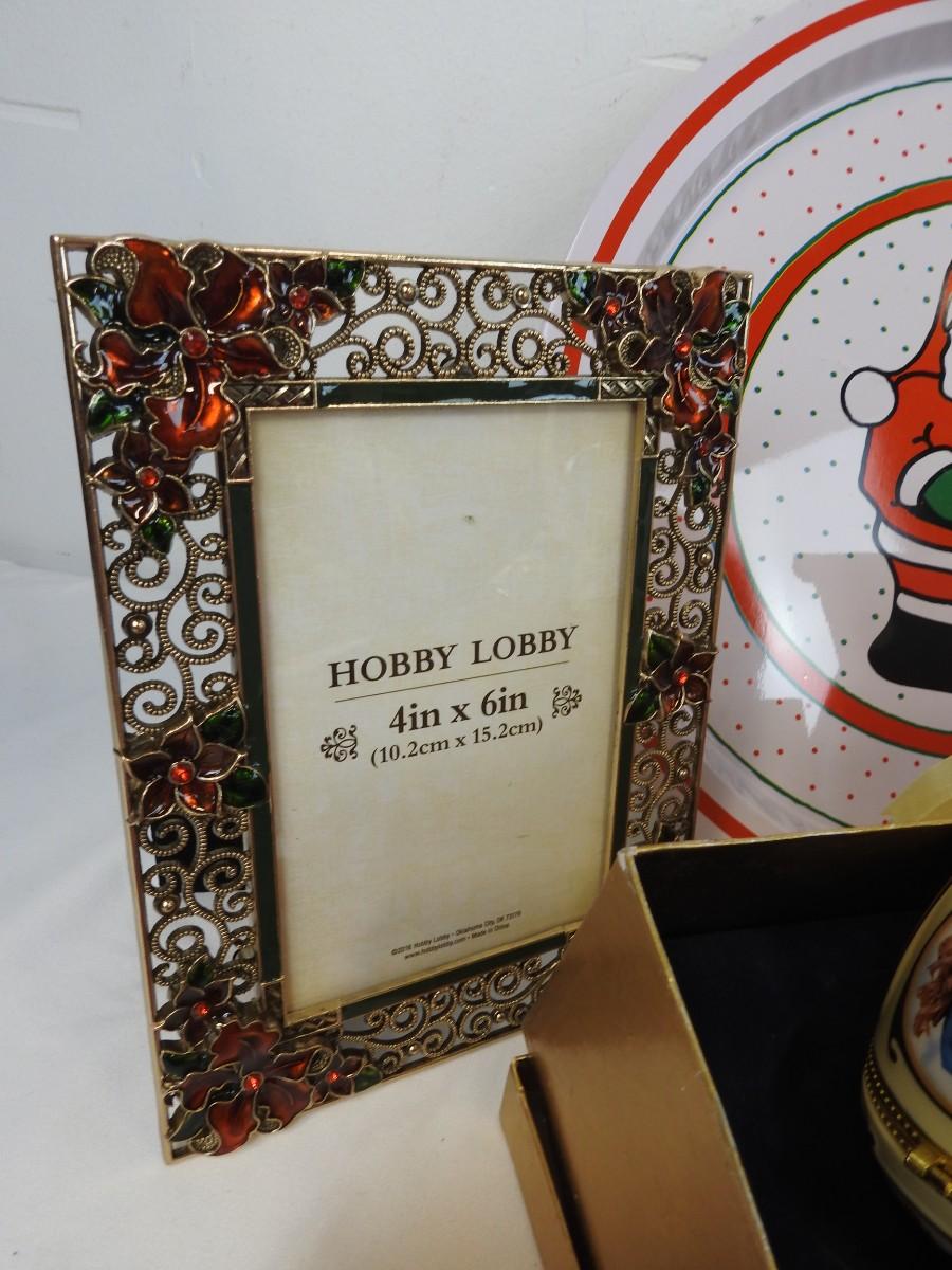 16+ pc Christmas Decor: Knit Doily, Santa, Vintage Window Decor, Frame, Ornaments