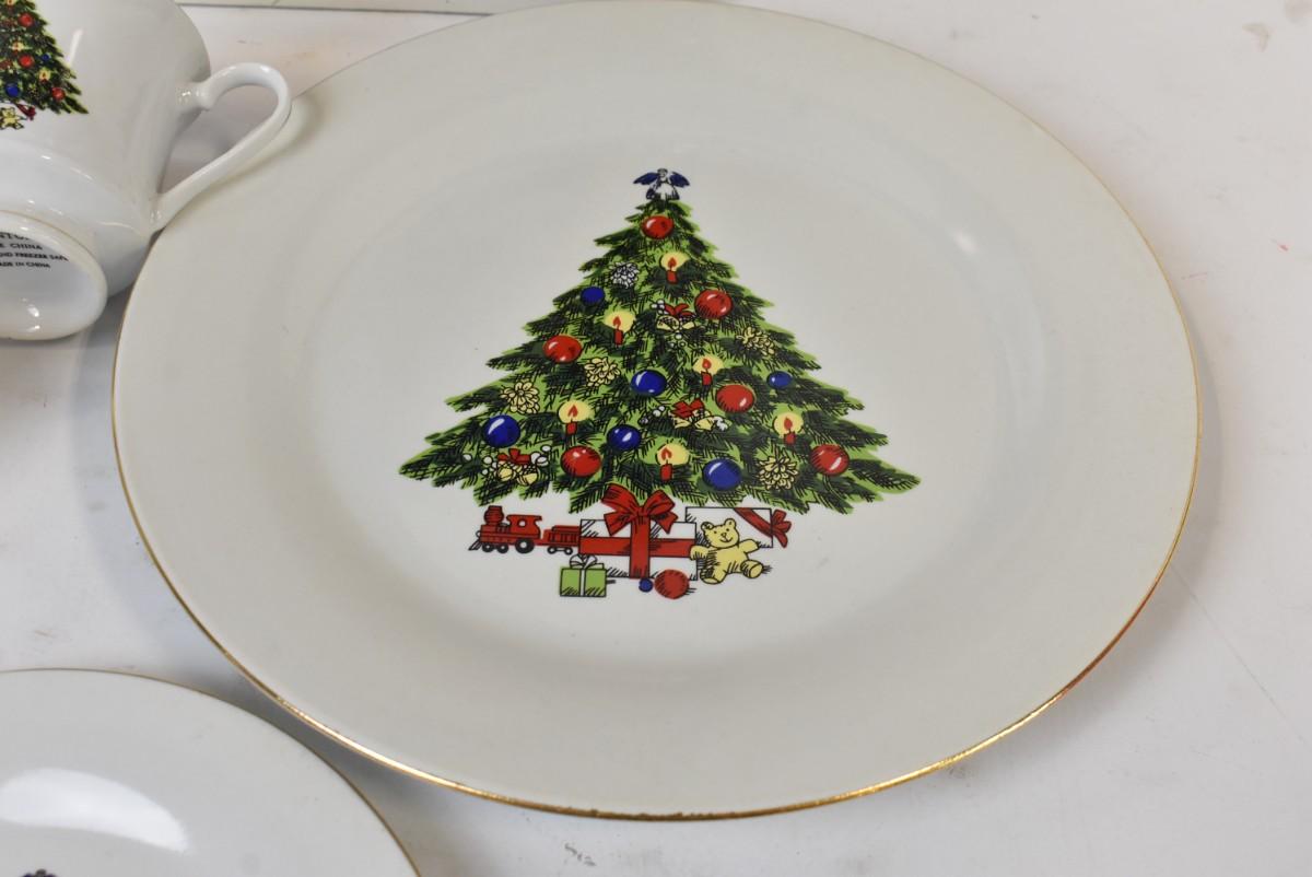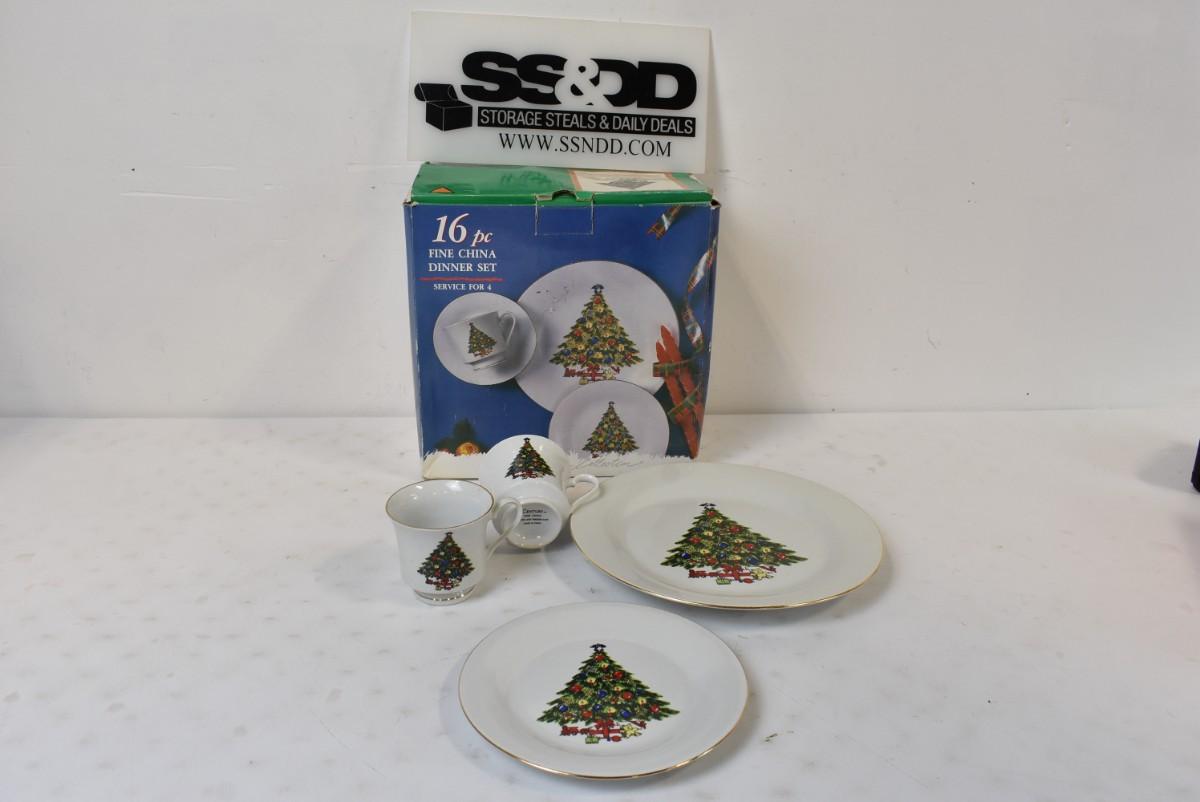 16 Pc Fine China Christmas Set: Plates, Saucers, Tea Cups