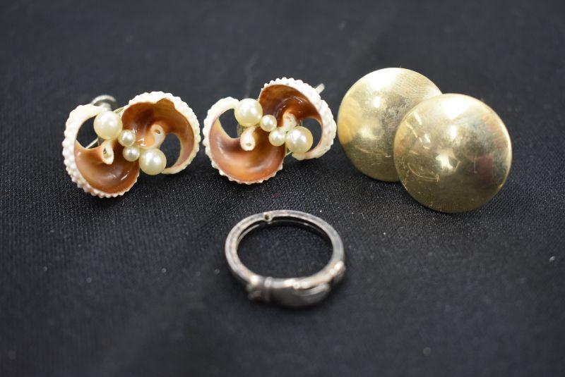 16 Piece Costume Jewelry: 7 Necklaces, 1 Bracelet, 4 Pair of Clip-on Earrings, 2 Rings, 1 Pendant, and 1 Pin - Vintage