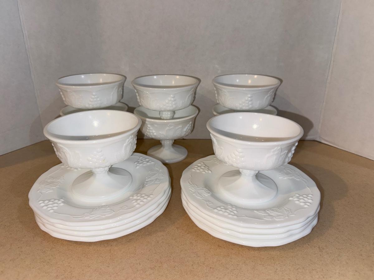 8 Vintage Milkglass Sherbets with 8 Underplates