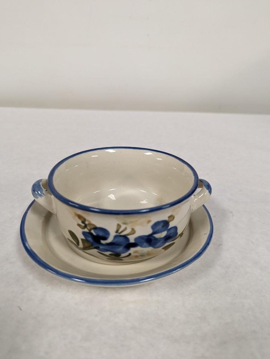 16 Pieces Chi Jiang Hand Painted Stoneware Bowls & Saucers