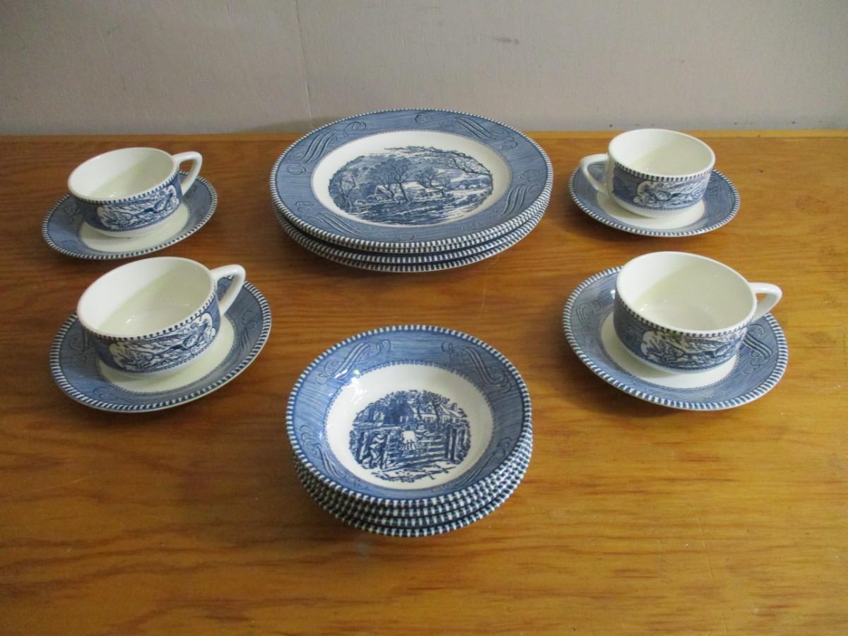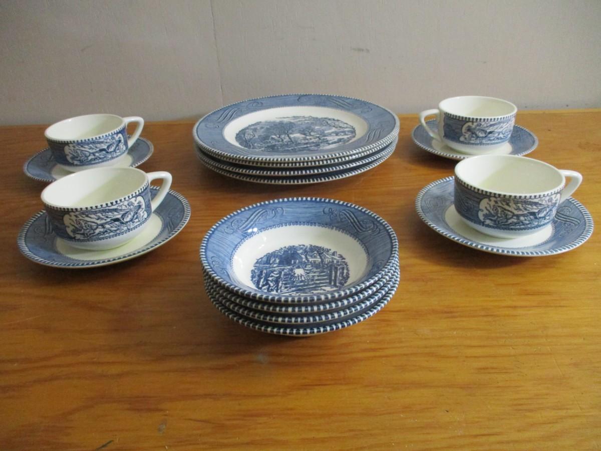 16 Pieces Of Currier & Ives "The Old Grist Mill" Dishes - F