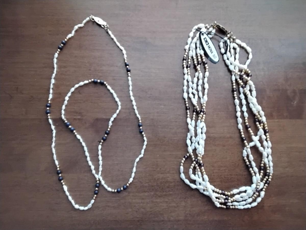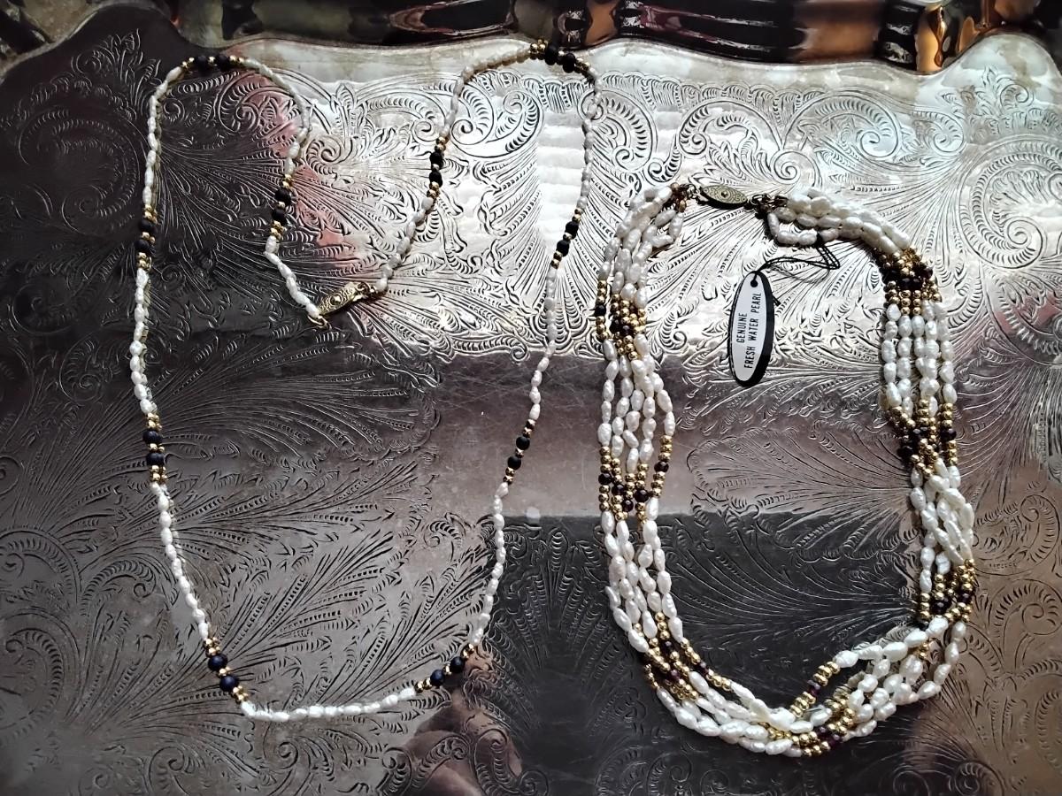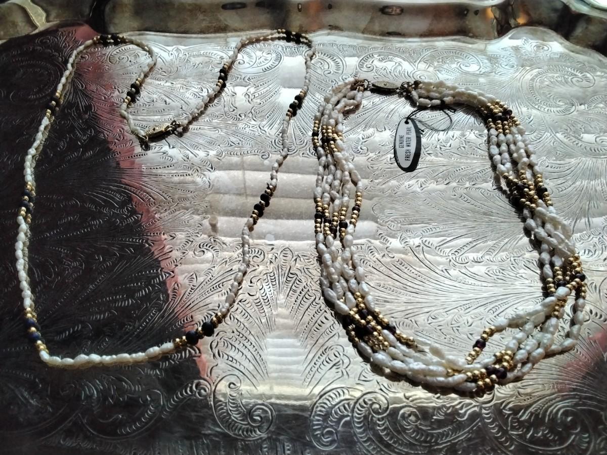 16" Pearl and Garnet with gold beads and 30" LAPIS Lazuli and Pearls with gold beads Mona So necklaces.