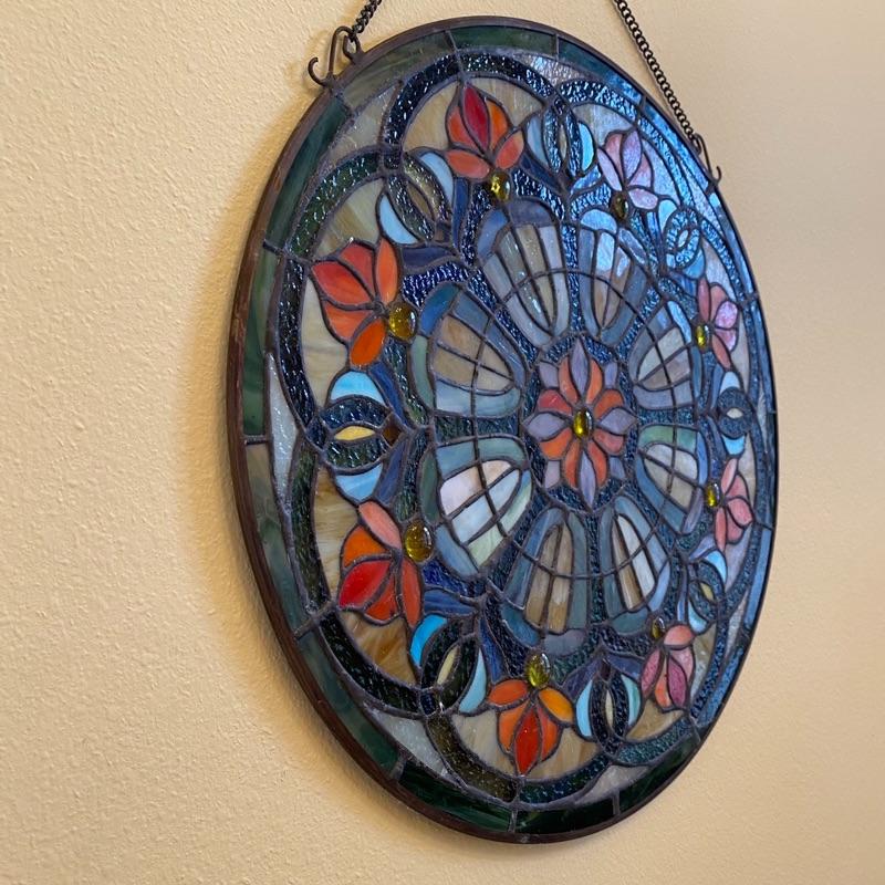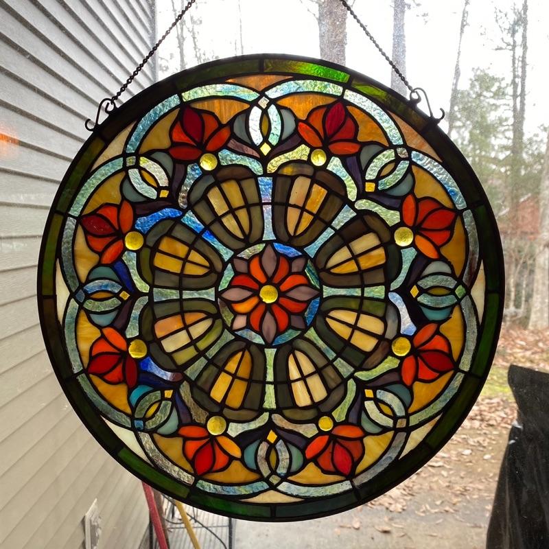 16” Round Hanging Stained Glass - kaleidoscope style