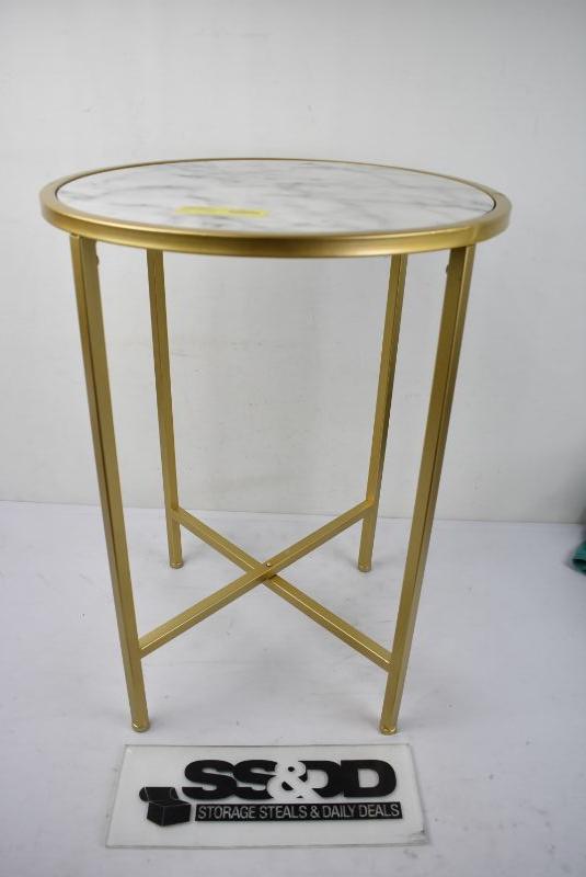16" Round Side Table w/Faux Marble Top, Some Small Scratches, $49 Retail