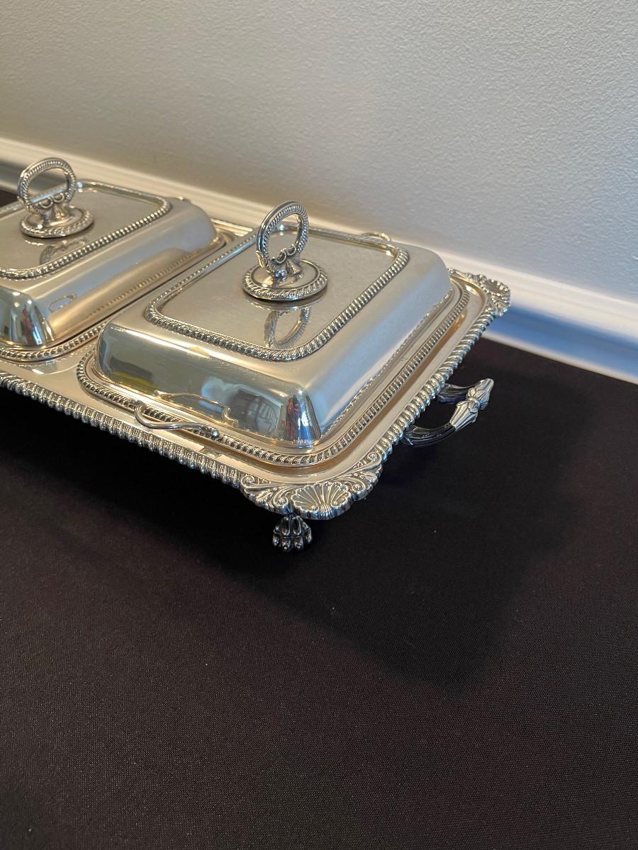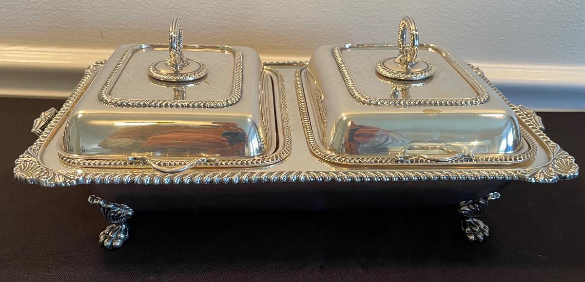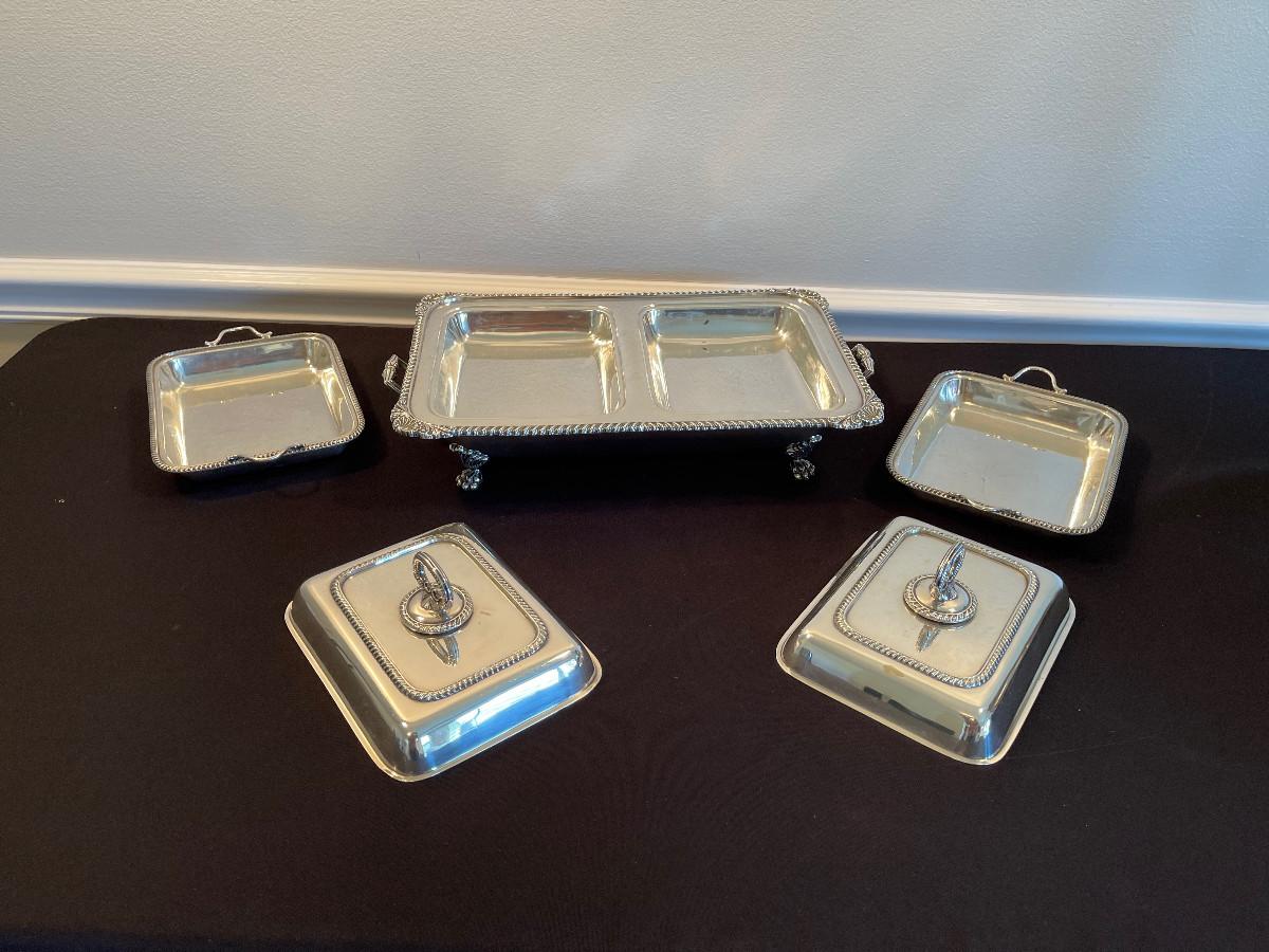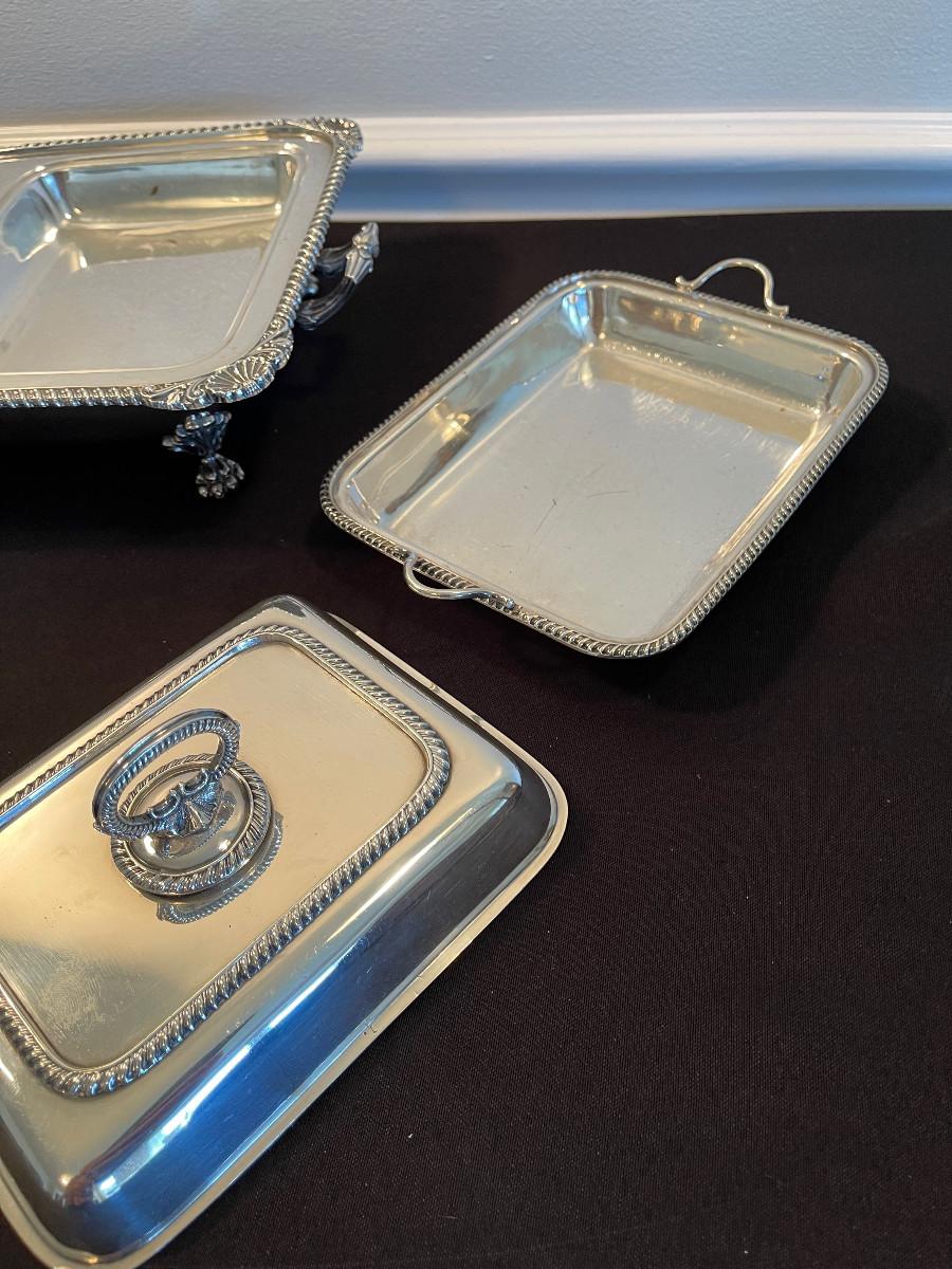 #16 Silver Divided Serving Dish with feet and Lid.