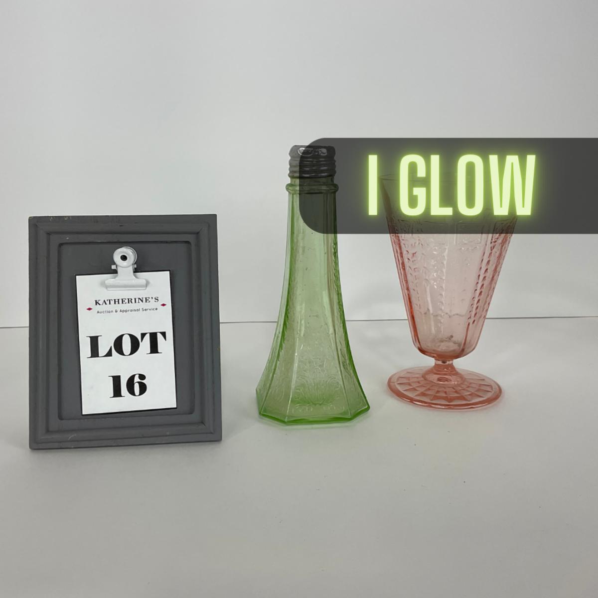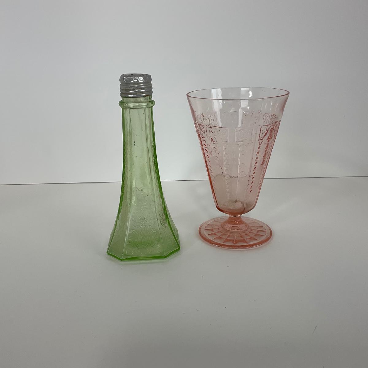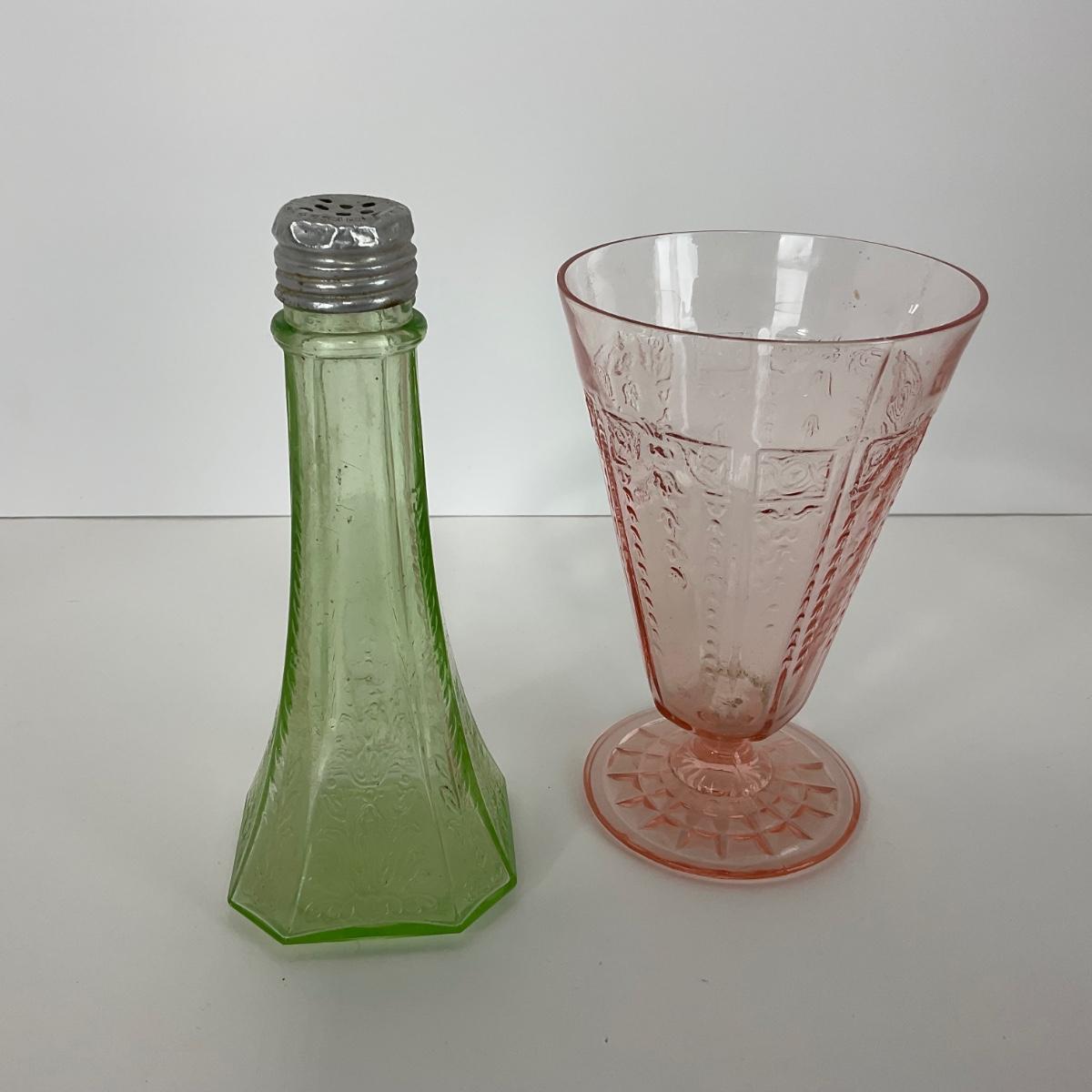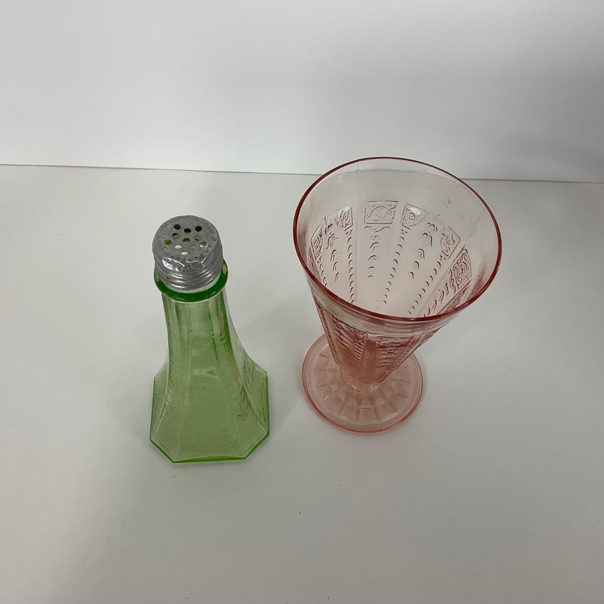 One uranium green shaker and one pink tumbler, Hocking Glass Co. Princess Pattern. Please see photos for details and condition. ::: Shipping is available on this lot. If you require shipping you must let us know at the close of the auction. We will coordinate with you after the item has been won. Shipping fees will include insurance up to or exceeding the value of all items being mailed. If you have any questions regarding this lot please contact the auctioneer either via this website, by direct email or by phone. PICK UP TIMES and other important information can be found in the TERMS and DESCRIPTION of the auction. Please take a look for pertinent information. Thanks!
