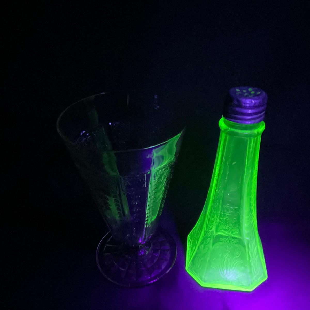 -16- URANIUM | Hocking Glass Co. Princess Pattern | Green Shaker & Tumbler