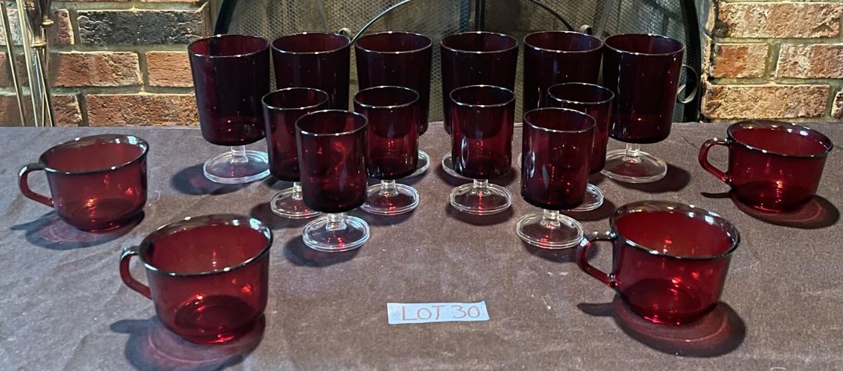 16 Vintage Ruby red glasses made in France