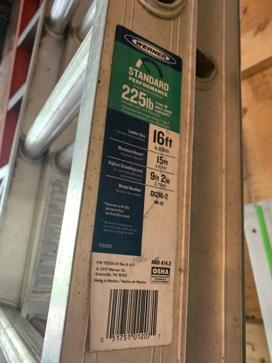 16 Foot Werner Aluminum Extension Ladder w/Leveler